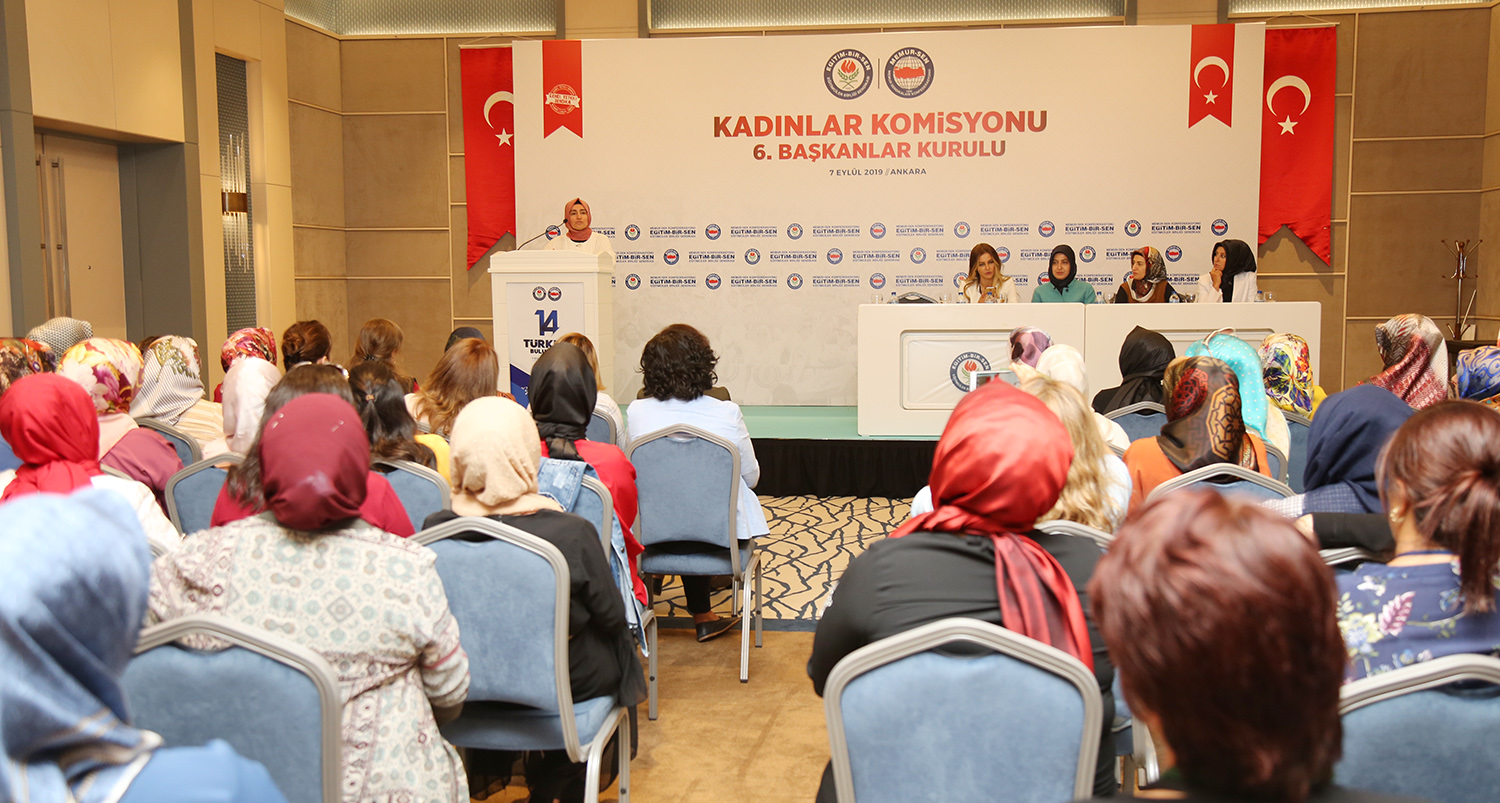 Eğitim-Bir-Sen Kadınlar Komisyonu 6. Başkanlar Kurulu Ankara’da yapıldı. Toplantının açılışında konuşan Eğitim-Bir-Sen ve Memur-Sen Genel Başkanı Ali Yalçın, sendikal mücadelede kadın liderlerin ve üyelerin örgütlenmeye katkılarına değinerek, “Yola çıktığımız günden beri kadının sendikal mücadeledeki yerini güçlendirmek ve bu mücadele yolunda birlikte yürümek için elimizden geleni yaptık. Her zaman söylediğimiz gibi burada bize düşen görev kadın üyelerimizin sayısını artırmak, kadın üyelerimize düşen ise temsilde sorumluluk almak için ter akıtmaktır. Sloganımız açık ve birçok şeyi anlatmak için de yeterli: Yol açık, yola çık” dedi.