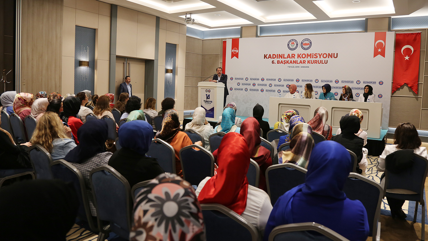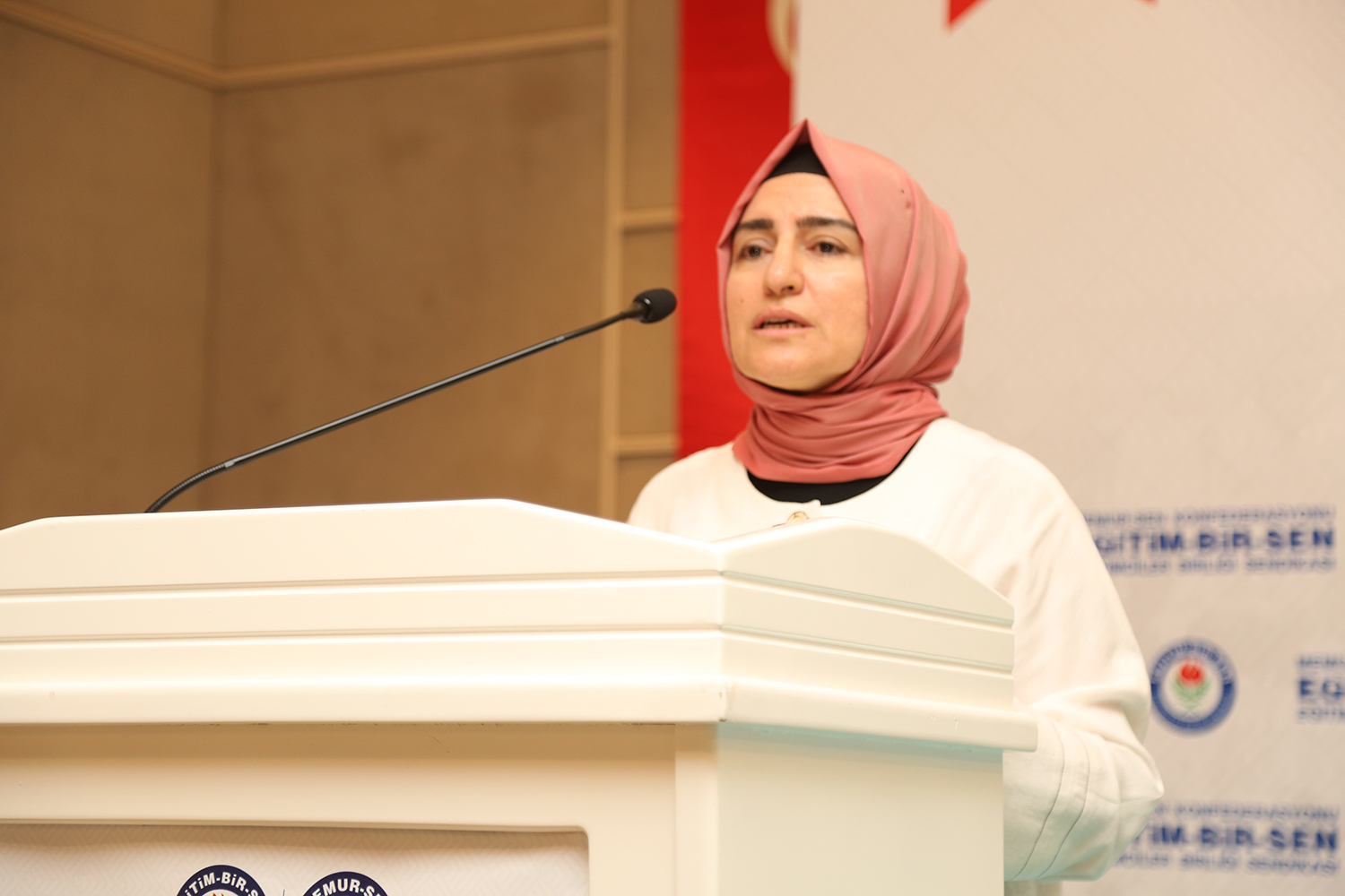 Eğitim-Bir-Sen ve Memur-Sen Kadınlar Komisyonu Başkanı Sıdıka Aydın, çalışma hayatının kendine has sorunları olduğunu belirterek, “Bu sorunların bizim tarafımızdan ifade edilmesi ve kadın eli değerek çözülmesi, çalışma hayatının çalışma şartlarının iyileştirilmesi konusunda kadınların daha fazla inisiyatif alması, kadınların üretim süreçlerinde etkin rol oynaması kadar ailedeki görevlerini icra etmesi de önemlidir. Üretimden geri kalmayan, aileyi de ihmal etmeyen bir çalışma hayatı ideal olandır” şeklinde konuştu.
