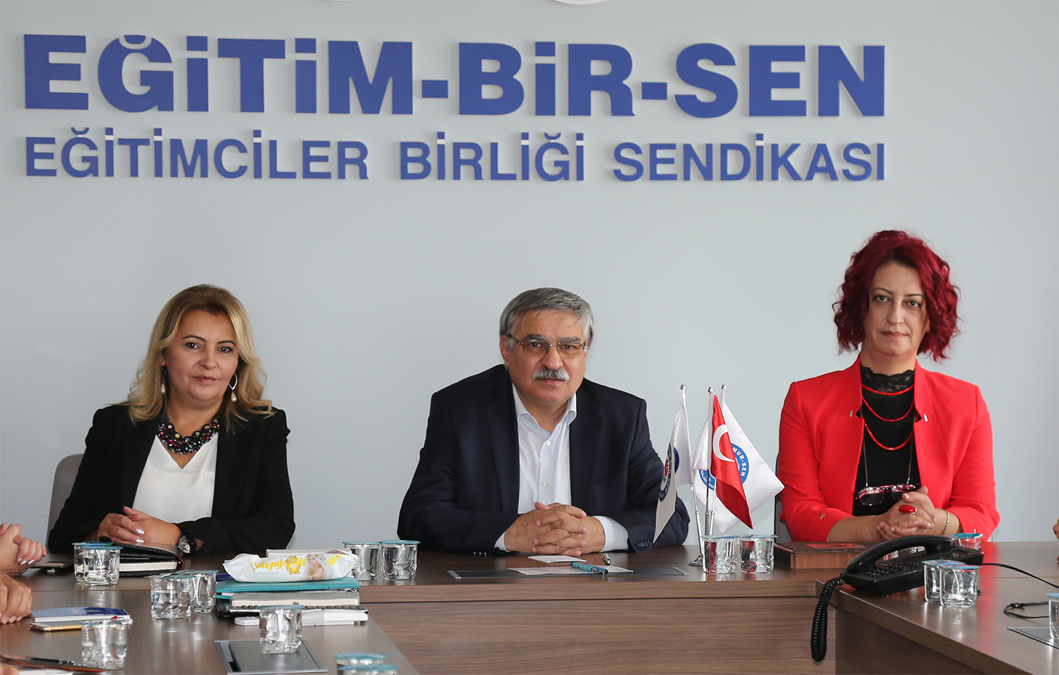 Meslek Eğitimcileri Usta Öğreticiler Federasyonu Başkanı Dilek Bayındır ve Türkiye’nin muhtelif illerinden gelen federasyon üyesi dernek başkanları Eğitim-Bir-Sen Genel Sekreteri Latif Selvi ile görüşerek, sorunlarının çözümü için destek istediler.