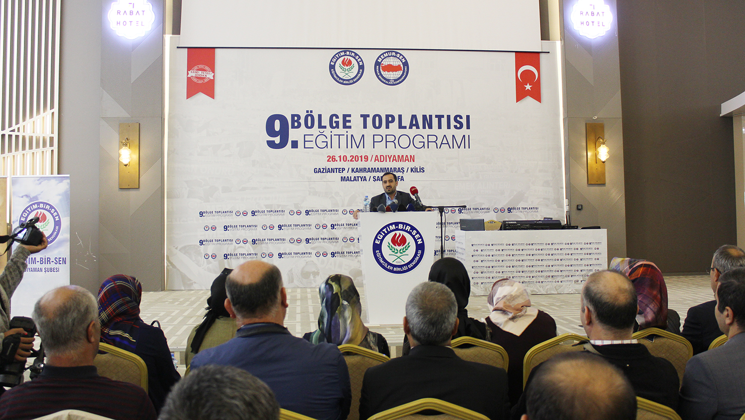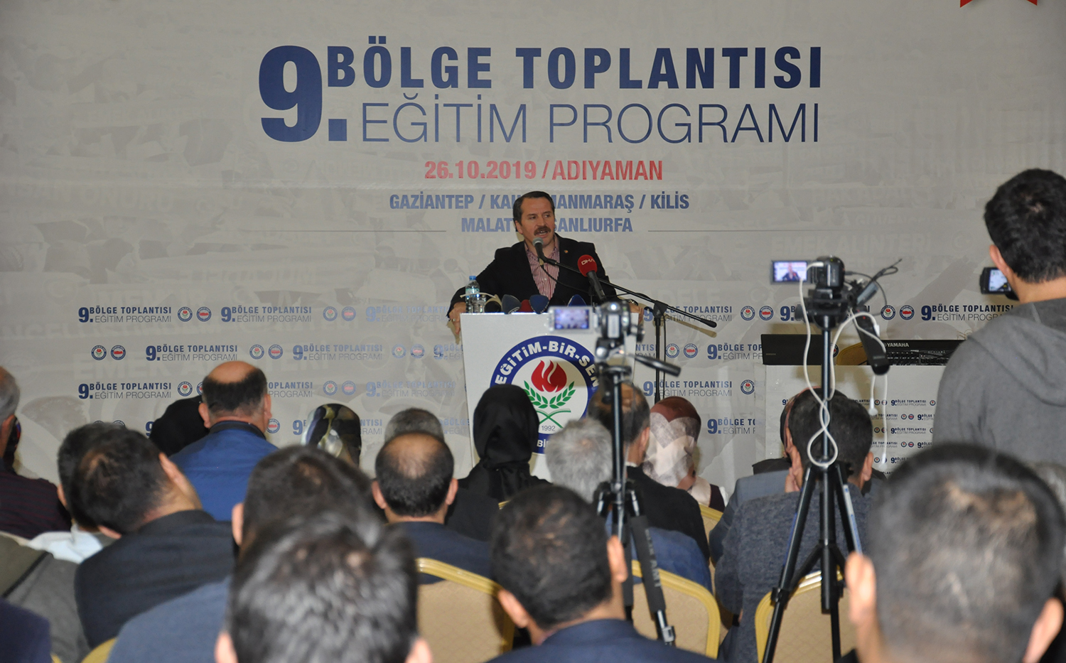 Eğitim-Bir-Sen 9. Bölge Toplantısı Adıyaman, Şanlıurfa, Kahramanmaraş, Kilis, Gaziantep, Malatya teşkilatlarının katılımıyla Adıyaman’da Genel Başkan Ali Yalçın’ın açılış konuşmasıyla; 10. Bölge Toplantısı Diyarbakır, Tunceli, Elazığ, Mardin, Şırnak, Siirt ve Batman teşkilatlarının katılımıyla Diyarbakır’da Genel Sekreter Latif Selvi’nin açılış konuşmasıyla başladı. Sendikal çalışmaların, yapılacak faaliyetlerin, toplu sözleşme sürecinin, eğitim ve eğitim çalışanlarının gündeminin konuşulduğu, istişarelerin yapıldığı, eğitim programlarının gerçekleştirildiği toplantılar, Genel Başkan Ali Yalçın’ın Diyarbakır’daki kapanış konuşmasıyla sona erdi.