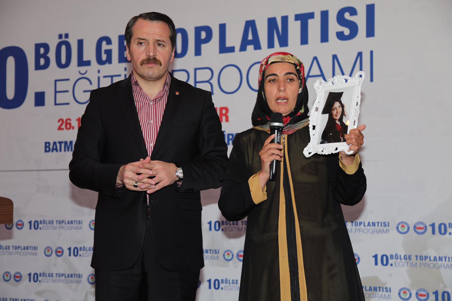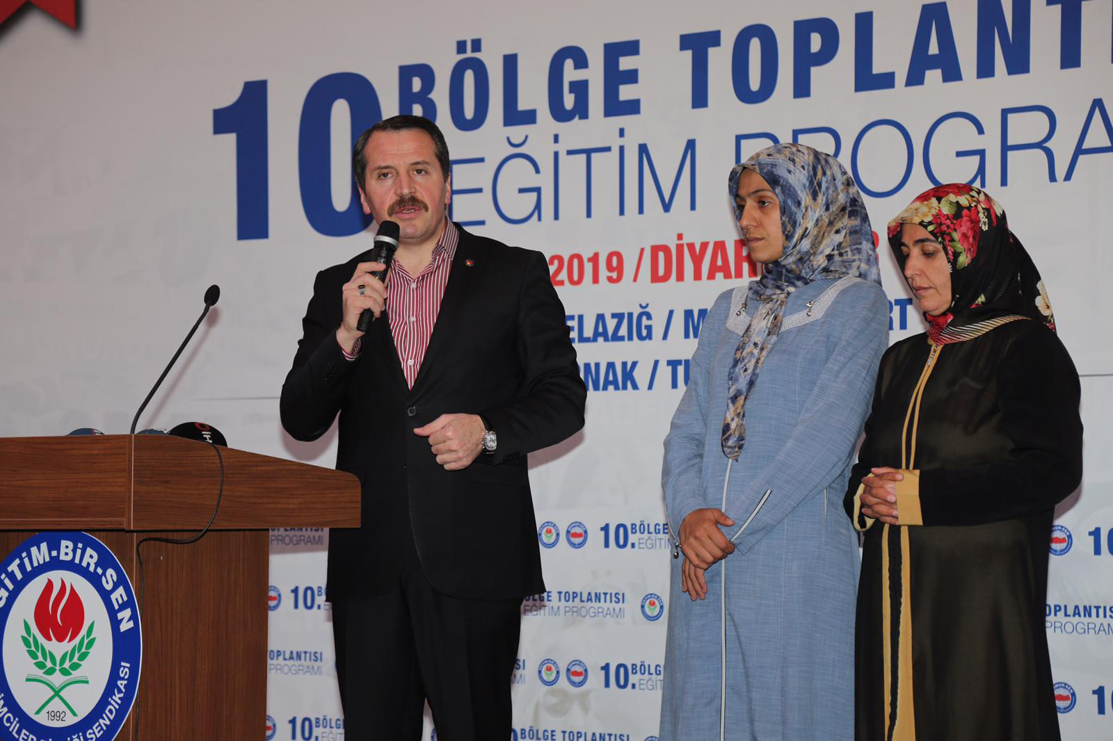 Eğitim-Bir-Sen ve Memur-Sen Genel Başkanı Ali Yalçın, Diyarbakır’da gerçekleştirilen 10. Bölge Toplantısı’nda yaptığı konuşmada, evlatları silah değil, kalem tutsun diye mücadele veren annelerin her zaman yanında olduklarını ifade ederek, “Onların acılarına ve umutlu bekleyişlerine ortak olmadan burada bir program icra etmek bize yakışmazdı. Evlatlarına kavuşmak için onurlu bir eyleme imza atan ve 53 gündür evlat nöbetinde olan aileleri temsilen bugün burada Halise ve Türkan annelerimiz aramızdalar. Evlatları silah değil, kalem tutsun diye mücadele veren annelerin bu bekleyişinde her zaman yanlarında olduğumuzu bir kez daha yineliyorum. Kararlı ve onurlu duruşlarıyla bu mücadeleyi sürdüren annelerimiz duygu ve düşüncelerini bugün bu salonda bizlerle paylaşacaklar” dedi.