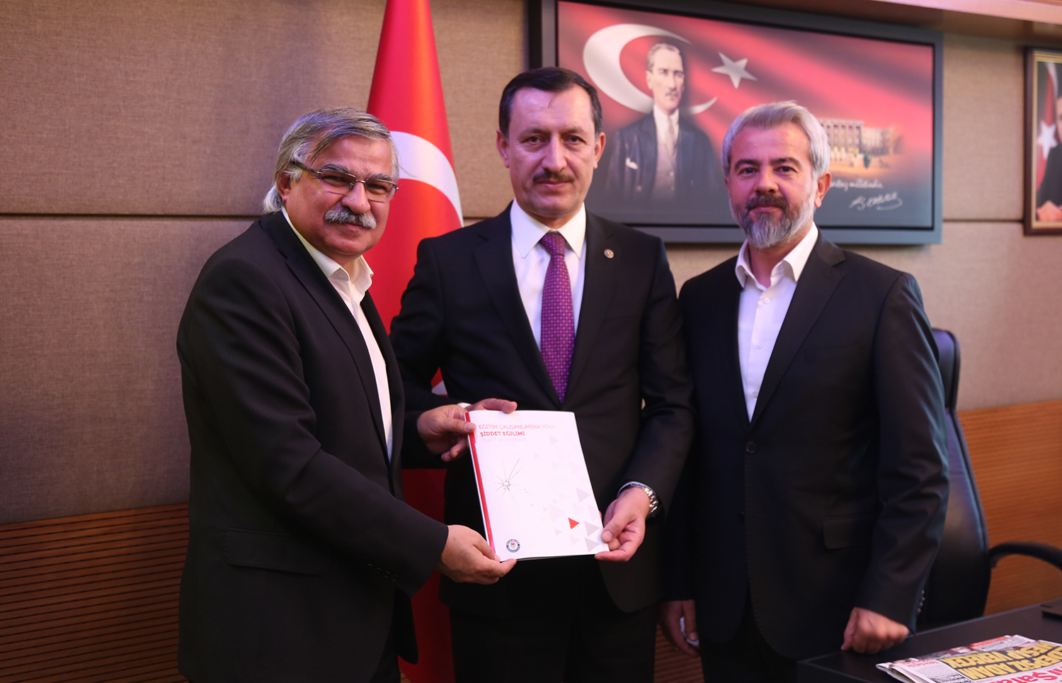 Selvi, eğitim çalışanlarına şiddet konusunun görüşüldüğü ziyarette, “Eğitim Çalışanlarına Yönelik Şiddet Eğilimi: Tespitler ve Öneriler” başlıklı çalışmayı Emrullah İşler ve Mehmet Muş’a takdim etti.