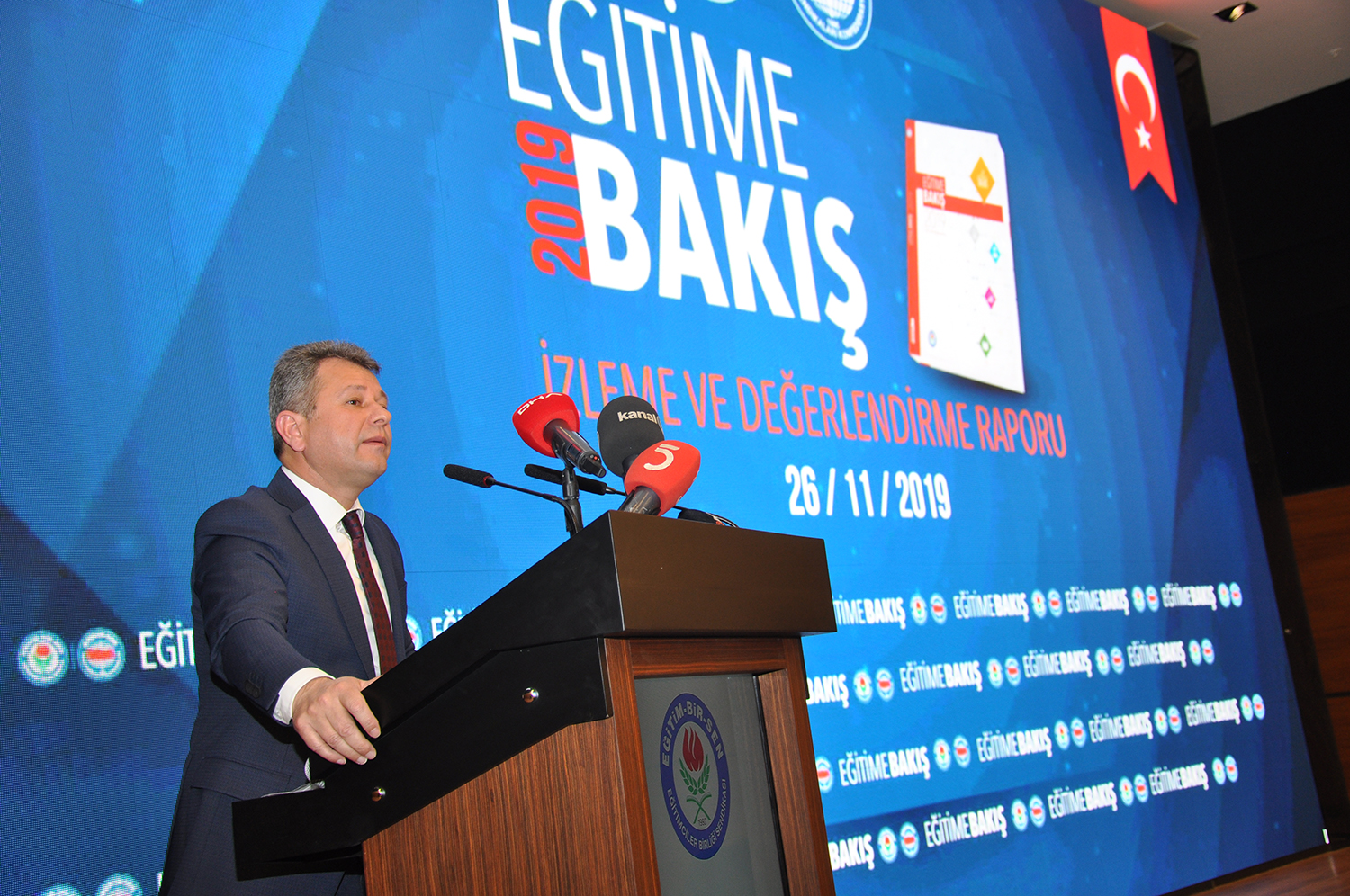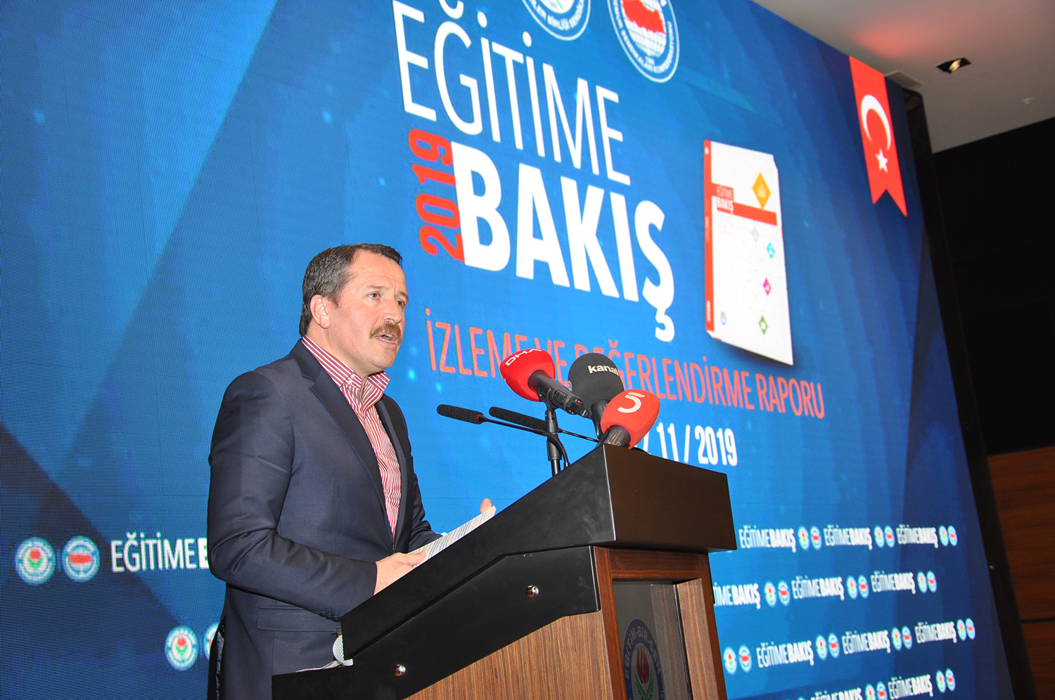 Ali Yalçın, Eğitime Bakış 2019: İzleme ve Değerlendirme Raporu’nu düzenlenen basın toplantısında kamuoyuyla paylaştı. Eğitime yapılan yatırımların ne kadar etkili ve verimli sonuçlar verdiğini görmek için politikaların ve uygulamaların sürekli olarak izlenmesi ve değerlendirilmesi gerektiğini ifade eden Yalçın, yapılan izleme ve değerlendirme çalışmalarının eğitim sisteminin mevcut durumunu, olumlu gelişme seyreden ve geliştirilmesi gereken alanlarını tespit etmeye ve eğitim sisteminin iyileşmesi adına veri temelli öneriler geliştirmeye imkân verdiğini söyledi.