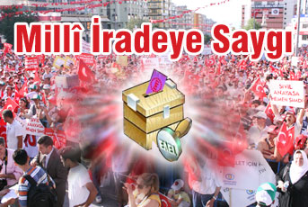 “Kayit yok, sart yok; egemenlik milletindir. Biz bu gerçegi daha önce Ortak Akil mitingleriyle bütün Türkiye’ye haykirdik. Simdi bunu bir kez daha milli iradenin ilk dogdugu yerden tekrarlayacagiz. Darbecilerin ve darbeseverlerin tarihin çöplügündeki yerini almasini istiyoruz.”
