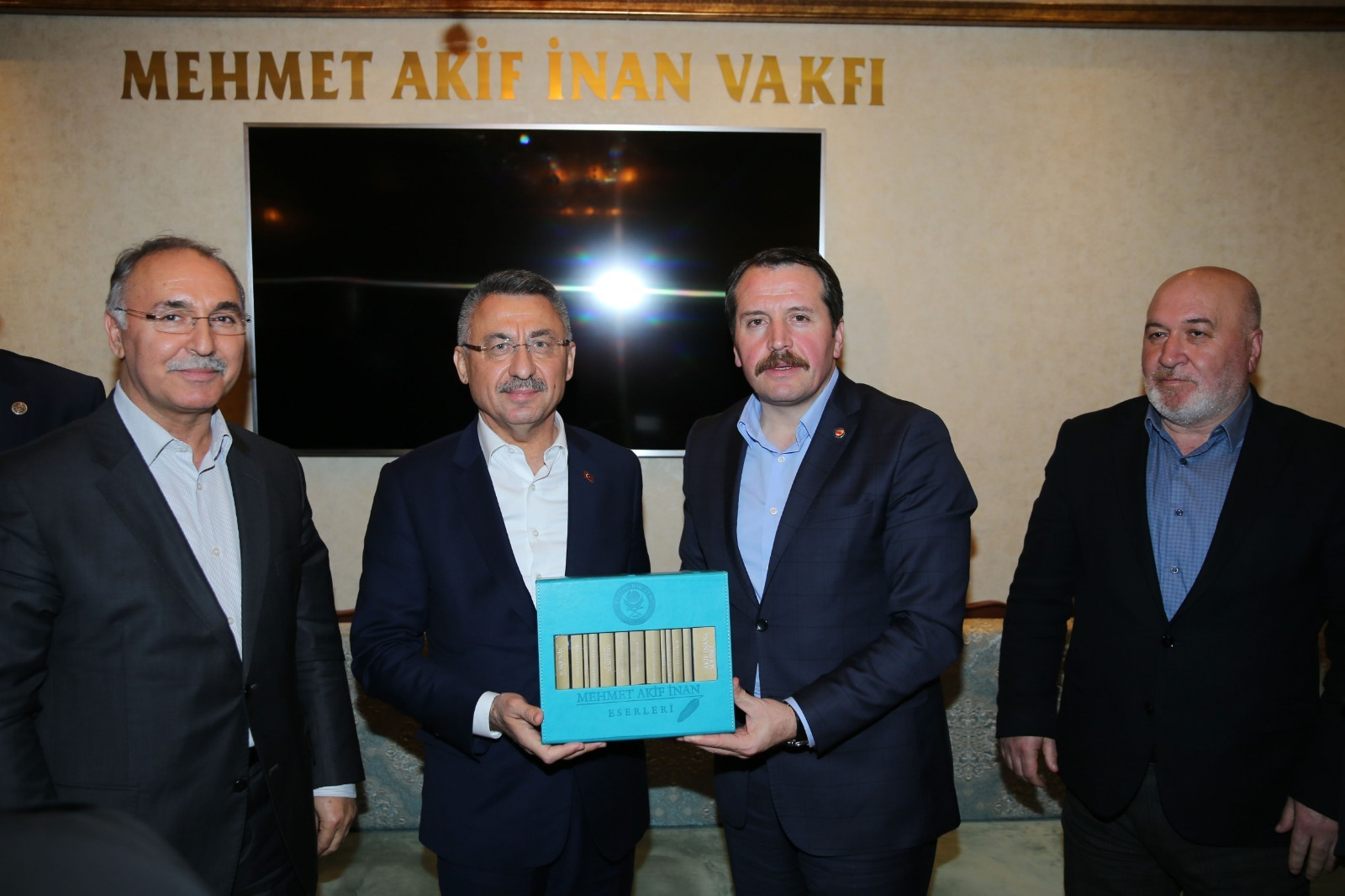Ziyaretin sonunda, Oktay’a Mehmet Akif İnan külliyatı hediye edildi.