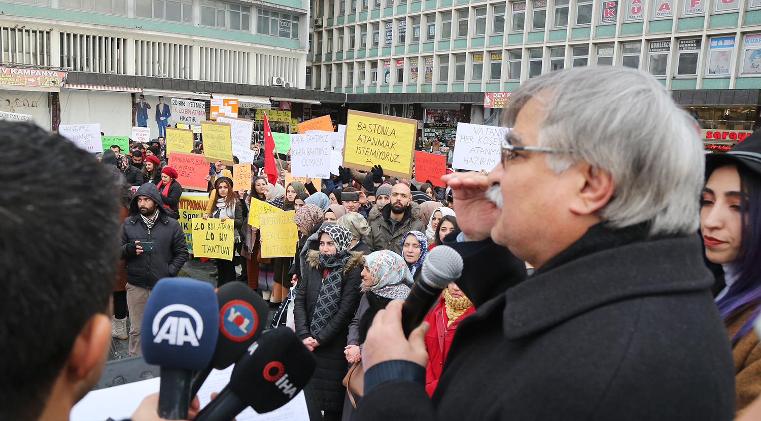 “Kadrolu atama mümkün değil, istihdamın esas çerçevesi sözleşmeliliktir, mantığını kabul etmiyoruz” diyen Selvi, sözlerini şöyle tamamladı: “Kimse bize, ‘kadrolu atama yapmıyoruz, sözleşmeli öğretmenlikle. O da olmazsa ücretli öğretmenlikle idare edin’ diyemez, bu kabul edilemez. Sosyal hukuk devletinin temeli ve milletin beklentisi hak sahibinin hakkını bulabilmesidir. Mücadeleniz haklı bir talebin karşılığını bulması içindir. Haklı mücadelenizde sonuna kadar size destek olmaya devam edeceğiz.”