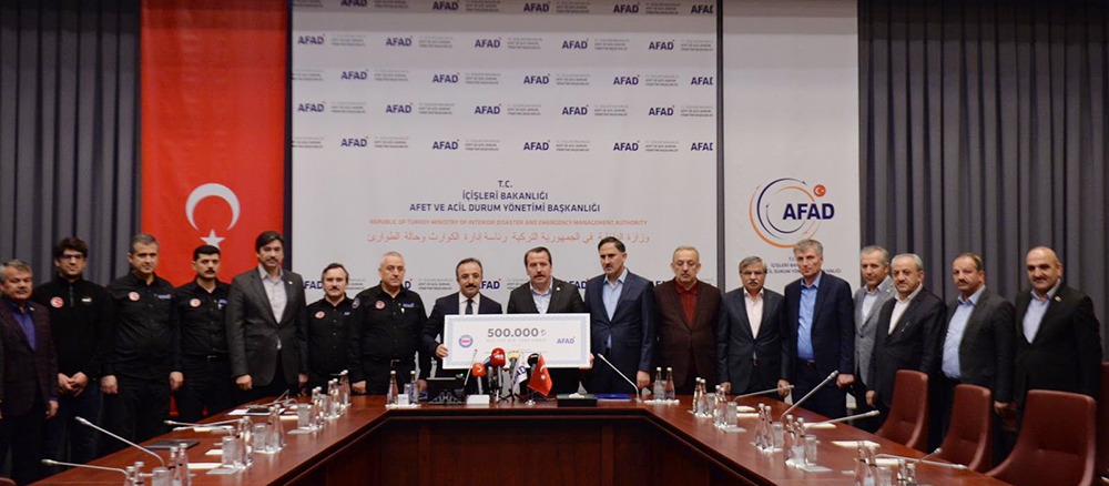 Elazığ ve çevre illerde meydana gelen depremin yaralarını sarmak için, Afet ve Acil Durum Yönetimi Başkanlığı’na (AFAD) 500 bin TL’lik bağışta bulunduk. 500 bin TL’lik çek, AFAD genel merkezinde, Eğitim-Bir-Sen ve Memur-Sen Genel Başkanı Ali Yalçın tarafından, İçişleri Bakan Yardımcısı İsmail Çataklı’ya takdim edildi. Memur-Sen’e bağlı sendikaların genel başkanları ile AFAD yöneticilerinin de bulunduğu programda bir konuşma yapan Genel Başkan Ali Yalçın, zor dönemlerde yardımlaşmanın önemine dikkat çekerek, “Biz Memur-Sen olarak, yaşanan afetlere, yıkımlara, gözyaşlarına duyarsız kalmadık, elimizi uzattık. Bu tip afetlerde duyarlı davranmak da son derece önemlidir. Bu süreçlerde dil uzatmak değil, el uzatmak gerekir. Ülkemizde ne yazık ki bazı kesimler bu dönemlerde el uzatmak yerine dil uzatmayı seçiyor, bu kolay olandır” dedi.