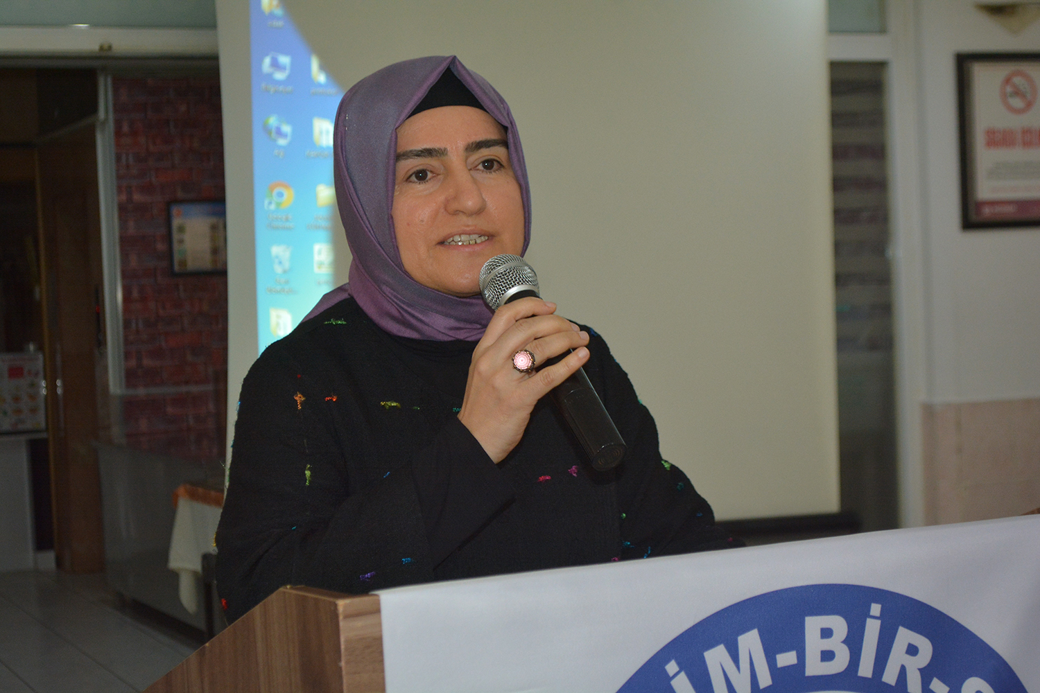 Kadınların hakları için doğru çözüm yolları üretmenin önemine değinen Aydın, “Aile, kadın için en tehlikeli yerdir diyenlere, gelin hep beraber aileyi güvenli bir sığınak kılalım. İş-aile uyumunu sağlayalım ki kadın evi ile işi arasında ezilmesin, aile daha da güçlensin, diyoruz. Biz, tarihi kadınların ezilmişliği üzerinden okuyanların ortaya çıkardığı cinsiyetler arası rekabetin yıkıcılığını görüyor ve diyoruz ki, kadın-erkek birbiri ile çatışan değil, insanlığı oluşturandır; rakip değil, refiktir. Bizler, kadın sendikacı sayısını artırmak için alın teri döküyoruz” diye konuştu.