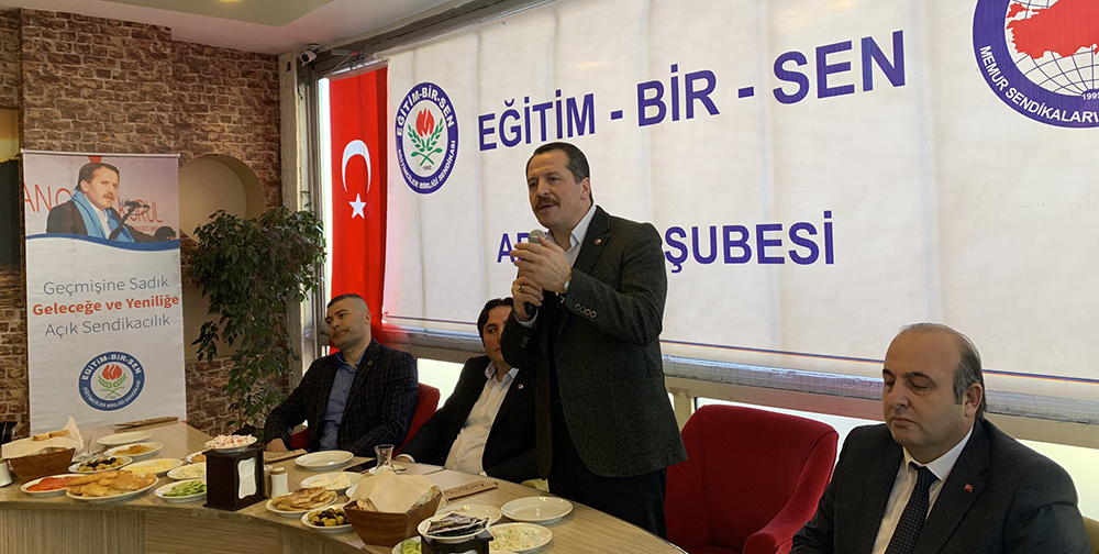 Eğitim-Bir-Sen ve Memur-Sen Genel Başkanı Ali Yalçın, özelde üyelerinin, eğitim çalışanlarının mali ve sosyal haklarını savunurken, genelde ülkemizin ve dünya mazlumlarının sorunlarına karşı duyarlı bir sendikacılık yaptıklarını ifade ederek, “Bir yandan emek, hak ve özgürlük mücadelesi veriyor, diğer yandan dünyanın mazlumlarına, masumlarına, mağdurlarına kucak açıyoruz. Zulme, zorbalığa, sömürü çarkına, insanları ve insani değerleri yok etme çabalarına karşı mücadele ediyoruz” dedi.