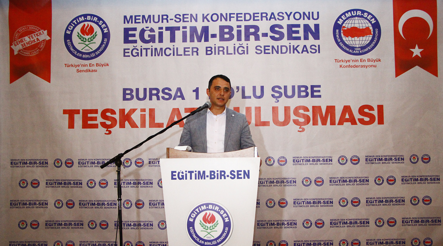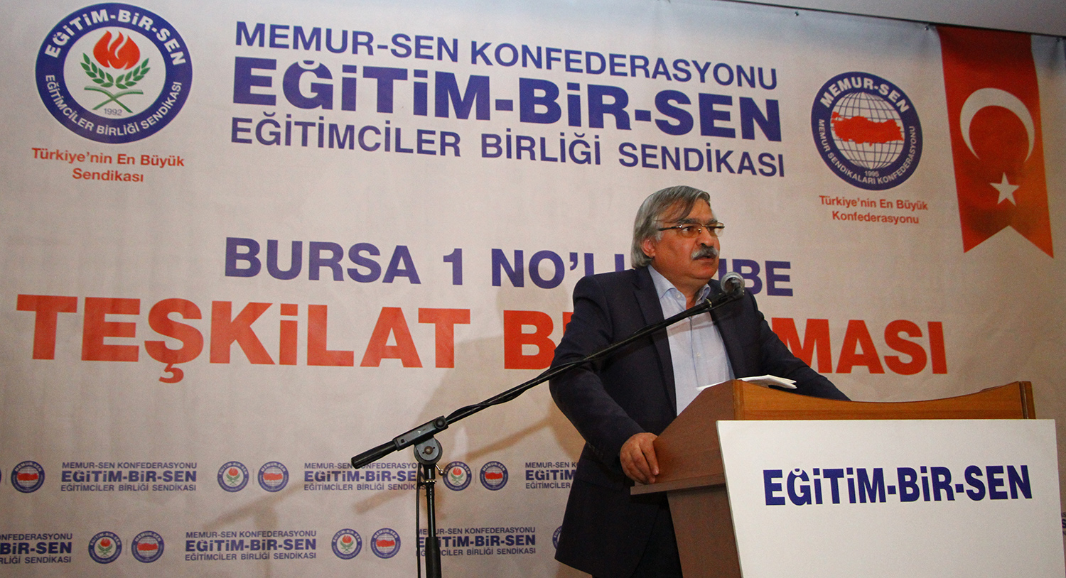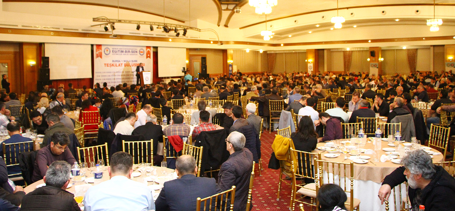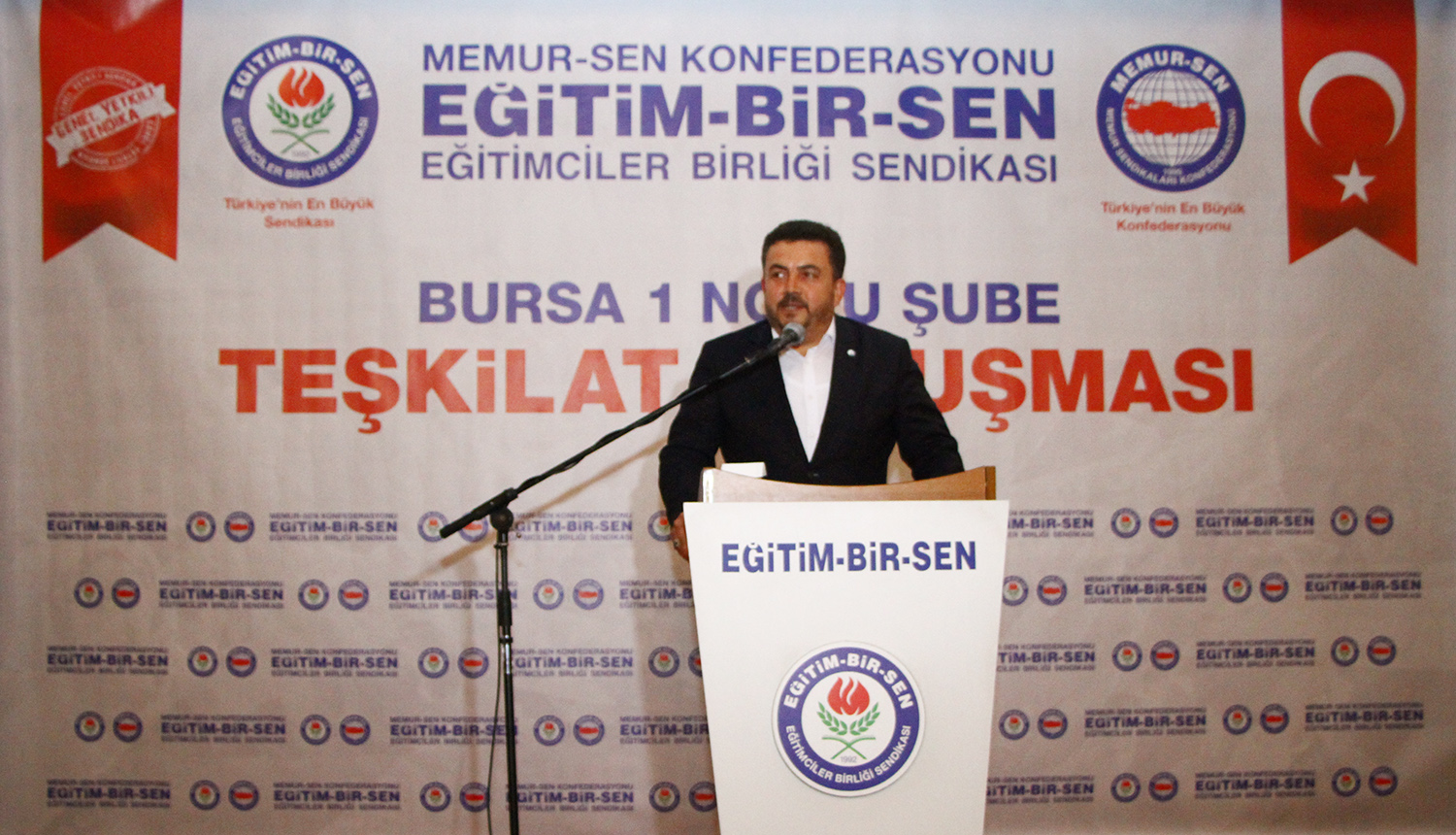 Eğitim-Bir-Sen Genel Sekreteri Latif Selvi ve Genel Başkan Yardımcısı Atilla Olçum, Bursa 1 No’lu Şube’nin düzenlediği ‘Teşkilat Buluşması’na katıldı. Sendikal çalışmalara ilişkin istişarelerin yapıldığı toplantıda konuşan Latif Selvi, 28 yıllık sendikal yolculuklarının kolay geçmediğini, mücadele ederek, ter akıtarak, engelleri aşarak, zorlukları göğüsleyerek, yokluklara göğüs gererek, bedel ödeyerek bugünlere geldiklerini söyledi.