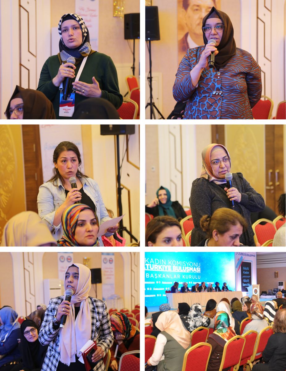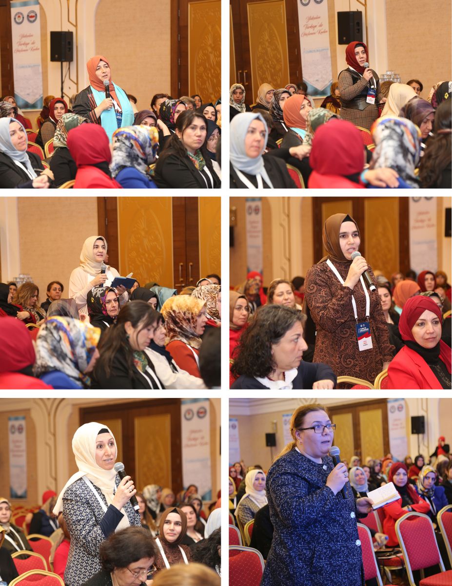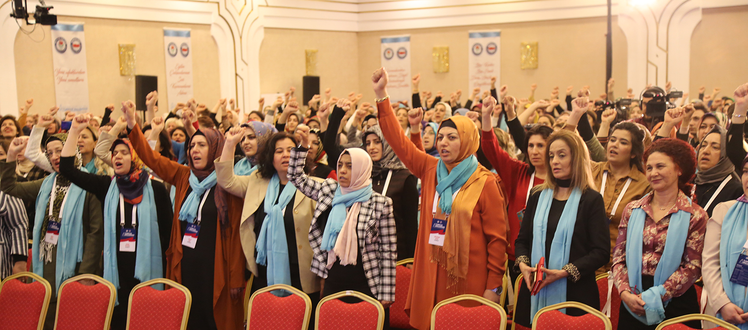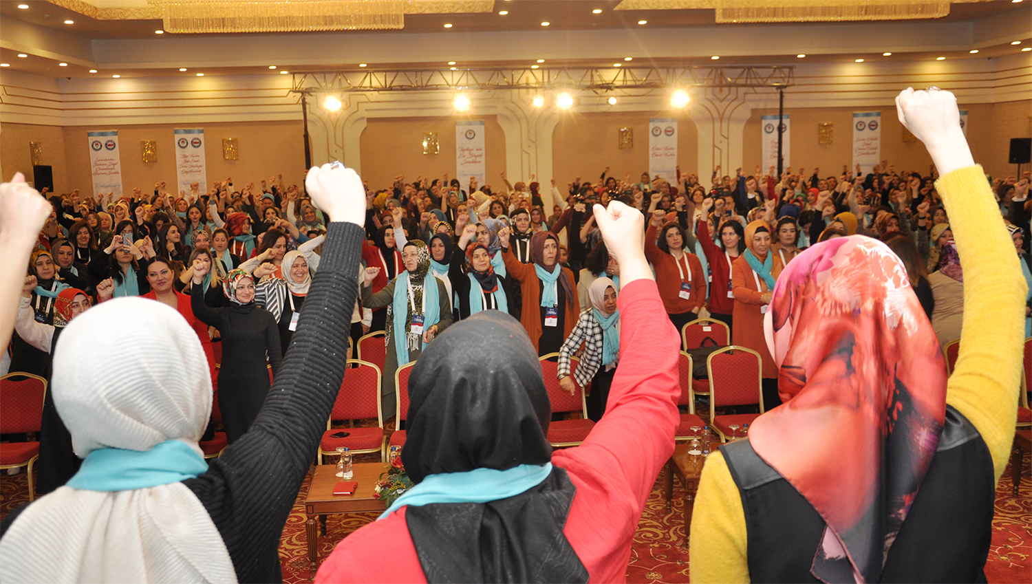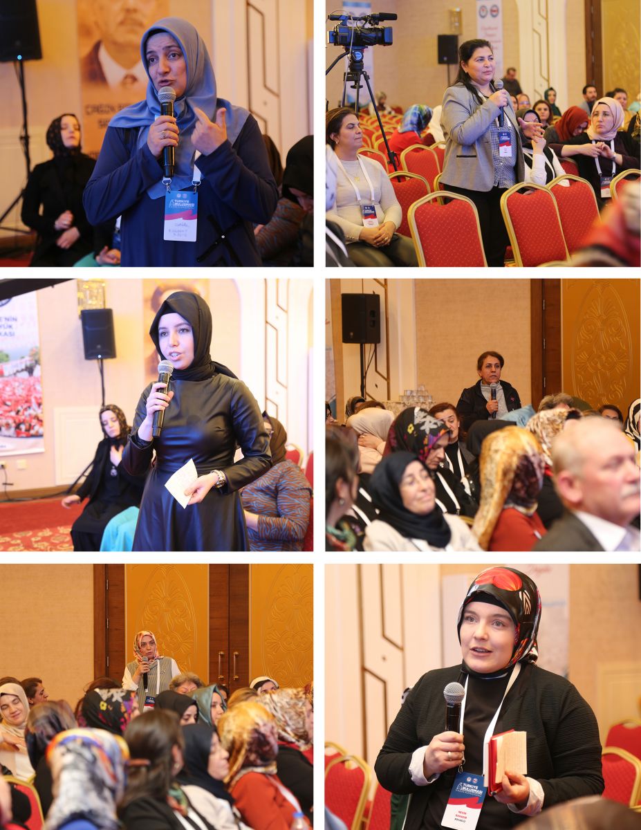 Eğitim-Bir-Sen Kadınlar Komisyonu Başkanı Sıdıka Aydın, kadına ve emeğe dair, tahlil ve tekliflerini daha güçlü dillendirerek mevcut ezberin dışına çıkabileceklerine inandıklarını belirterek, “Bizler sendikacı kadınlar olarak, Batı’nın kadın haklarına dair ikiyüzlülüğünün bir diğer yansıması olarak ‘toplumsal cinsiyet eşitliği paradigmasını’ tartışmaya muhtaç görüyoruz. Bizim önerimiz açık ve nettir. Biz diyoruz ki, kadına dair geliştireceğimiz her politika coğrafyamızın, kültürümüzün, inancımızın, örfümüzün izlerini taşısın. Aksi takdirde konu ideolojik bir savaş ajanına dönüşür, toplumda kutuplaşma üretir, kadim mayamıza zarar verir. İbn-i Rüşd’ün diliyle söyleyecek olursak, yumurta dıştan bir güçle kırılırsa yaşam son bulur, içten bir güçle kırılırsa yaşam başlar. Zira sahih dönüşümler hep içerden başlar. Dışarıdan dayatılan fikirlere, müdahalelere ihtiyacımız yok. Biz gelenekle geleceği buluşturacak eğitimcileriz. Kurucu genel başkanımız Merhum Mehmet Akif İnan’ın deyimiyle ‘biz gelenekçiyiz ama hurdaperest değiliz.’ İnanıyorum ki bu teşkilat, kadın ve emek konusunda sahih bir dönüşümü gerçekleştirecek niceliğe de niteliğe de sahiptir” dedi.