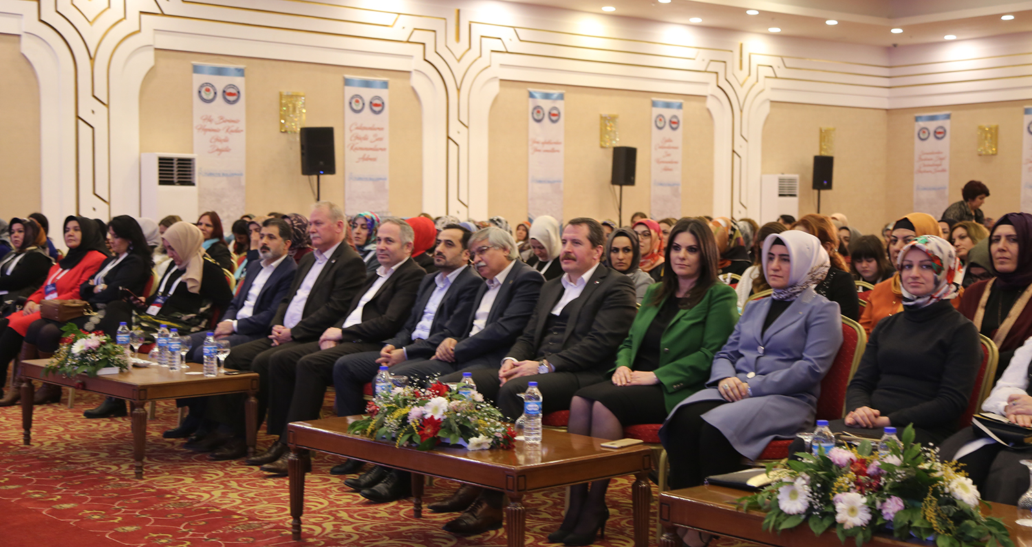 Kahramanmaraş Milletvekili Habibe Öçal, kadının ve erkeğin yeryüzünü beraber imar edeceğini dile getirerek, şunları kaydetti: “Kadınların zorba tavırlarla, küstah zorbalıklarla kamudan, toplumdan dışlandığı kara günler geride kaldı. Artık sizlerin fikirleri, eylemleri, direnci ve dirayeti bizim yönümüzü, rotamızı ve başarı limanlarını belirleyecektir. Sizin dik duruşunuz ve azminiz olduğu müddetçe artık kimse bu milletin kadınlarına hiçbir yerde had bildirme hadsizliğini gösteremeyecektir. Siz gücümüze güç kattığınız müddetçe vesayetin, darbenin ve zorbalığın bu ülke tarihinde esamesi bile okunmayacaktır. Sizler anne olarak şefkatin, eş olarak sadakatin ve sendikacı kadınlar olarak emeğimizin ve ekmeğimizin mücadelesini temsil eden kadınlarsınız.”