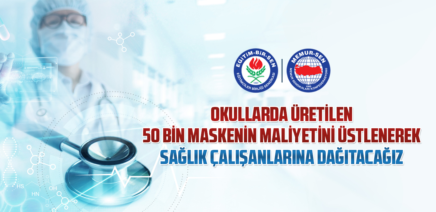 Konfederasyonumuz Memur-Sen, Millî Eğitim Bakanlığı’na yazı yazarak, Bilim ve Sanat Eğitim Merkezlerinde ve meslek liselerinde üretilen yüz koruyucu siperlerden 20 bin adet, koruyucu maskelerden de 30 bin adet olmak üzere toplamda 50 bin adet ürünün, sağlık çalışanlarına dağıtmak için, maliyetini üstlenmek istediğini belirtti.