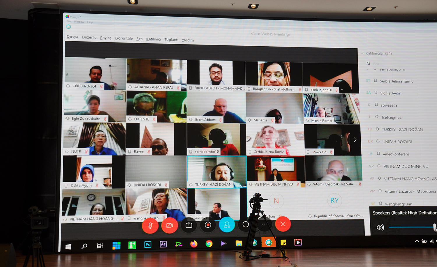 Arnavutluk Bağımsız Eğitim Sendikası Başkan Yardımcısı Arian Peraj, ETUCE Avrupa eski Direktörü Martin Romer, Endonezya Öğretmenler Sendikası Başkanı Unifah Rosyidi, Gambiya Öğretmenler Sendikası Başkanı Saffie Nyassie, Güney Afrika Yükseköğretim Çalışanları Sendikası Başkanı Xolani Tom, Hırvatistan Eğitim Sendikası Başkan Yardımcısı Ana Tuskan, İran Çalışanlar Birliği Başkanı Ali Reza Mahjoub, Kamerun Eğitimciler Sendikası Başkanı Daniel Etchu Ojong, Kenya Ulusal Eğitimciler Sendikası Başkanı Wilson Sossion, Kosova Eğitim Bilim ve Kültür Sendikaları Birliği (SBASHK) Başkanı Rahman Jasharaj, Litvanya Eğitim Çalışanları Sendikası Başkan Yardımcısı Egle Zukauskaite, Makedonya Ulusal Eğitim Çalışanları Sendikası Başkan Yardımcısı Vito Lozanivski, Malezya Ulusal Eğitim Sendikası Genel Sekreteri Harry Tan, Eğitim Enternasyonali Afrika Eğitim Sendikaları Koordinatörü Mairem Sakho, Sırbistan Öğretmenler Sendikası Başkan Yardımcısı Jelena Tomic, Tacikistan Eğitim ve Bilim Sendikası Çalışanları Başkanı Ramazon Odinaev, Moğolistan Bilim ve Eğitim Sendikaları Federasyonu Başkan Yardımcısı Tsetsegmaa Gendenjamts ve Vietnam Eğitimciler Sendikası Başkanı Vu Mınh Duc’un katıldığı video konferansın açılışında konuşan Ali Yalçın, ülke olarak salgına karşı verdikleri mücadeleye, yaptıkları çalışmalara ilişkin bilgi vererek, millet olarak herkesin elinden geleni, üzerine düşeni yapmaya gayret ettiğini söyledi. Salgın nedeniyle kritik bir döneme girildiğini belirten Yalçın, “Bütün dünya kritik bir süreçtedir. Çalışma ve eğitim hayatı başta olmak üzere, hemen hemen bütün alanlar ciddi bir şekilde bu süreçten etkilenmiştir” dedi.