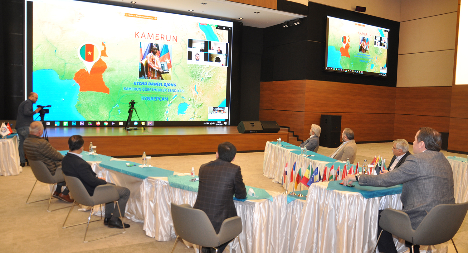 Genel Başkan Ali Yalçın, eğitim sendikalarının yöneticilerine katılımlarından ve toplantıya katkılarından dolayı teşekkür ederek, “KOVID-19 Salgın Sürecinin Eğitim ve Çalışma Hayatına Etkileri” başlıklı eğitim sendikalarıyla uluslararası video konferans toplantılarının üçüncüsünü Fransızca konuşulan ülkelerin eğitim sendikalarıyla yapacaklarını sözlerine ekledi.