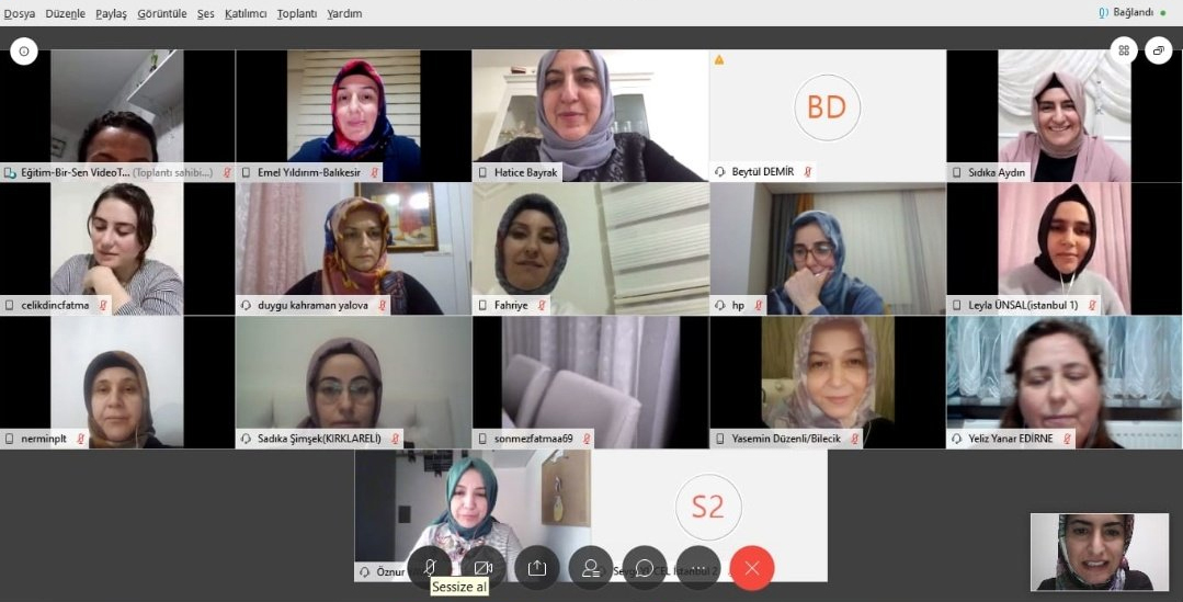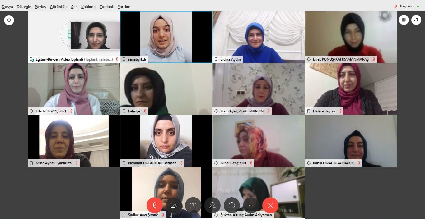 Eğitim-Bir-Sen Kadınlar Komisyonu, bölge toplantılarını video konferansla yaptı. Başkan Sıdıka Aydın, Marmara, Karadeniz, Doğu Anadolu, Güneydoğu Anadolu, Ege, Akdeniz ve İç Anadolu Bölge toplantılarında şube kadınlar komisyonu başkanlarıyla ‘KOVID-19 salgın süreciyle ilgili genel ve bölgesel durum tespiti, salgının eğitim ve çalışma hayatına etkileri, yeni süreçte sendikal çalışmalar ve yol haritası, Vefa Sosyal Destek Grubu’nda görev alan teşkilat mensuplarının çalışmaları’nı konuştu.