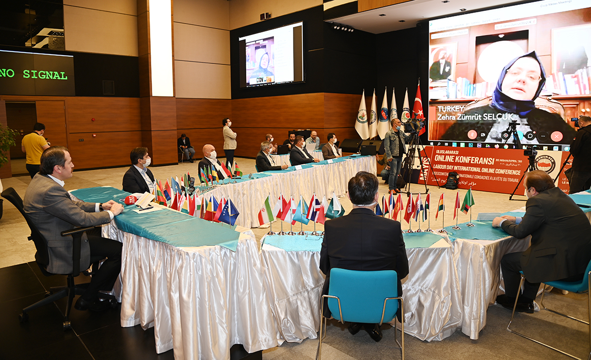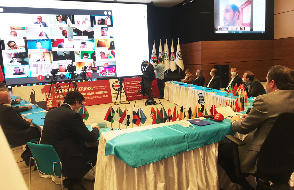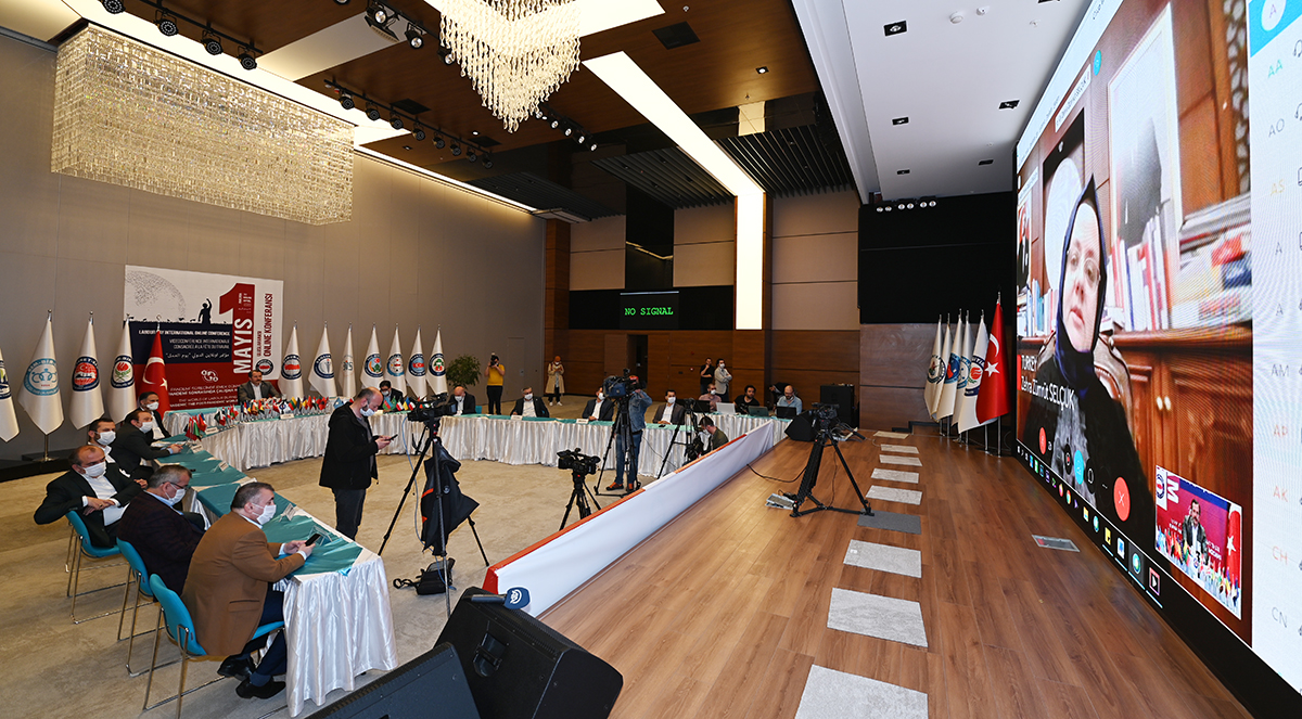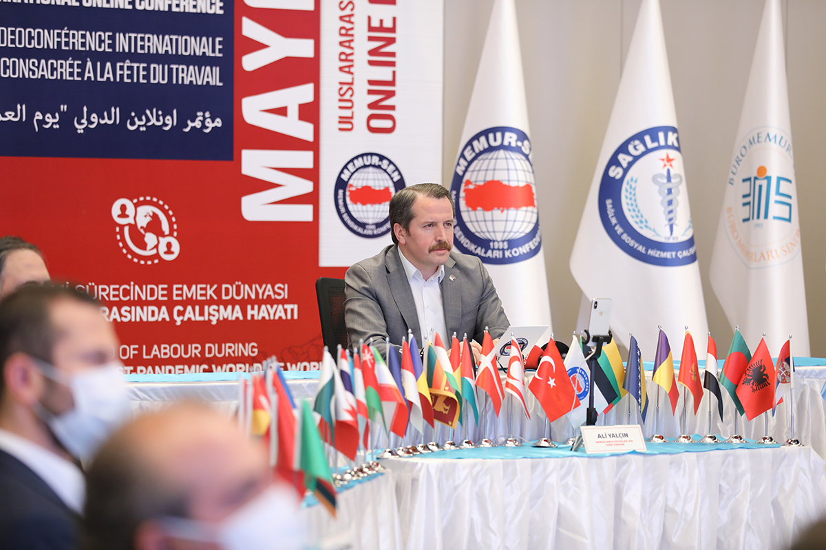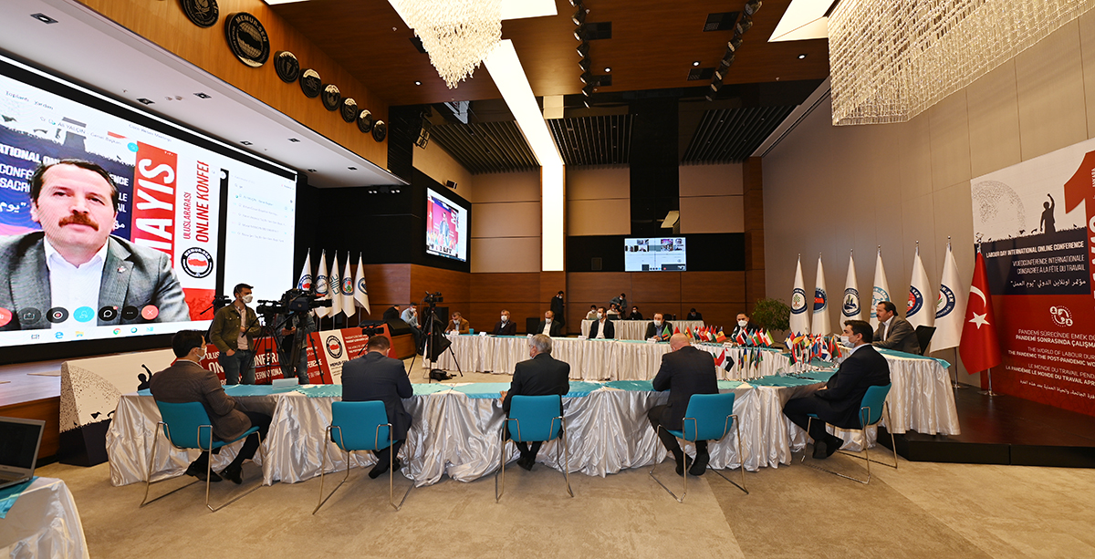 “Pandemi Sürecinde Emek Dünyası, Pandemi Sonrasında Çalışma Hayatı” temasıyla online olarak gerçekleştirilen uluslararası konferansın açılışında Eğitim-Bir-Sen ve Memur-Sen Genel Başkanı Ali Yalçın, Aile Çalışma ve Sosyal Hizmetler Bakanı Zehra Zümrüt Selçuk ve Sudan İşçi Sendikaları Federasyonu Genel Başkanı Yousif Ali Abdelkarim konuştu.