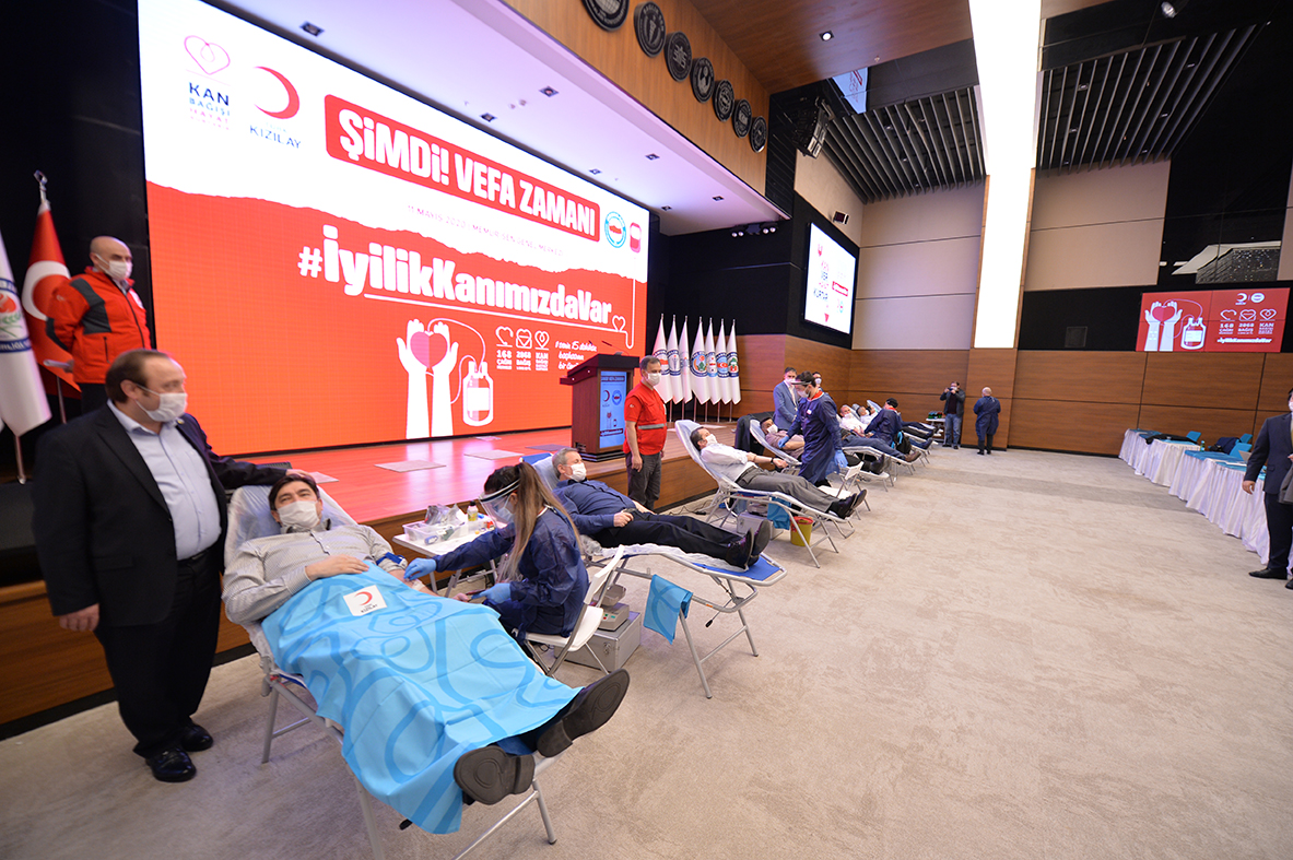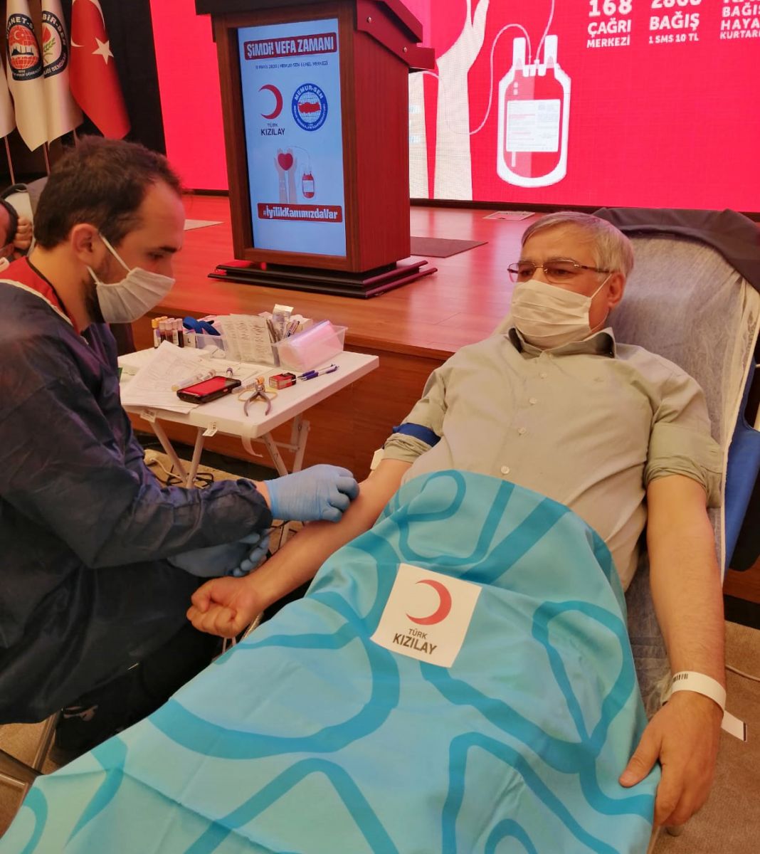 Kan verme işleminden önce konuşan Genel Başkan Ali Yalçın, “Kovid-19 salgını nedeniyle başlangıçtan bugüne iki kalıcı mesajımız vardı: ‘Evde kal, hayatta kal ve hayat eve sığar.’ Bugün bunlara bir üçüncüsünü ekliyoruz ve ‘Kan ver hayat ver, Kızılay’a destek ver’ diyoruz” ifadelerini kullandı.