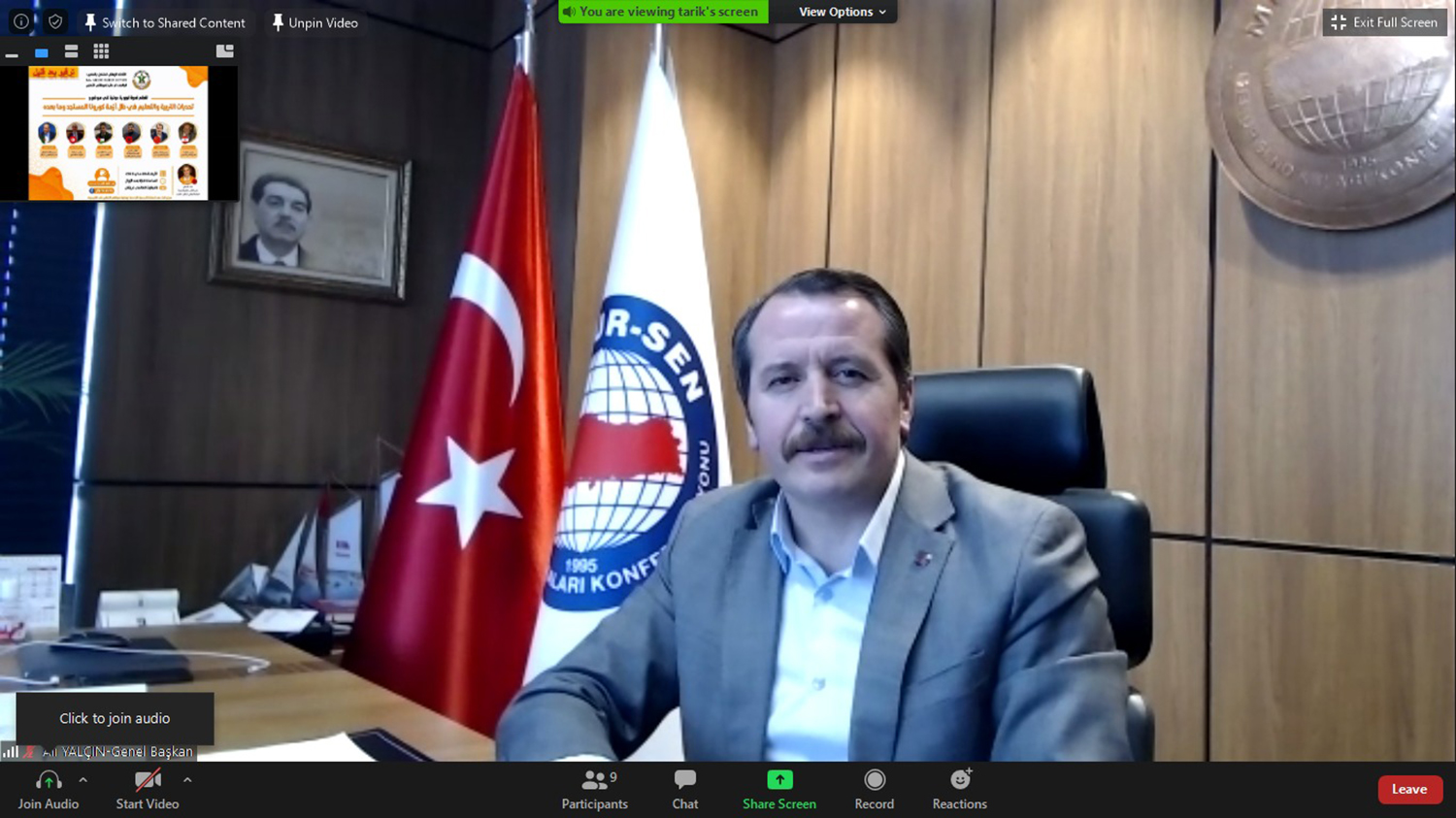 Eğitim-Bir-Sen ve Memur-Sen Genel Başkanı Ali Yalçın, Fas Ulusal Eğitim Çalışanları Sendikası’nın (UNTM) düzenlediği “Koronavirüs Sürecinde ve Sonrasında Eğitim ve Zorluklar” başlıklı online konferansa katıldı.