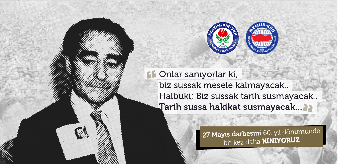 Türkiye’ye büyük acı yaşatmaya kodlanan askeri vesayetin sahipleri, yalanlar ve iftiralarla millî iradeyi kafese aldı, en büyük insanlık suçunu işledi. 27 Mayıs’tan sonra kurulan düzmece mahkeme, Başbakan Adnan Menderes, Dışişleri Bakanı Fatin Rüştü Zorlu ve Maliye Bakanı Hasan Polatkan’ı darağacına gönderdi, Cumhuriyeti vesayet rejimine dönüştürdü. Hukuk katledildi, demokrasi ayaklar altına alındı, millet iradesinin üzerine ipotek konuldu. Demokrasi tarihimiz bir kez daha kirletildi.
