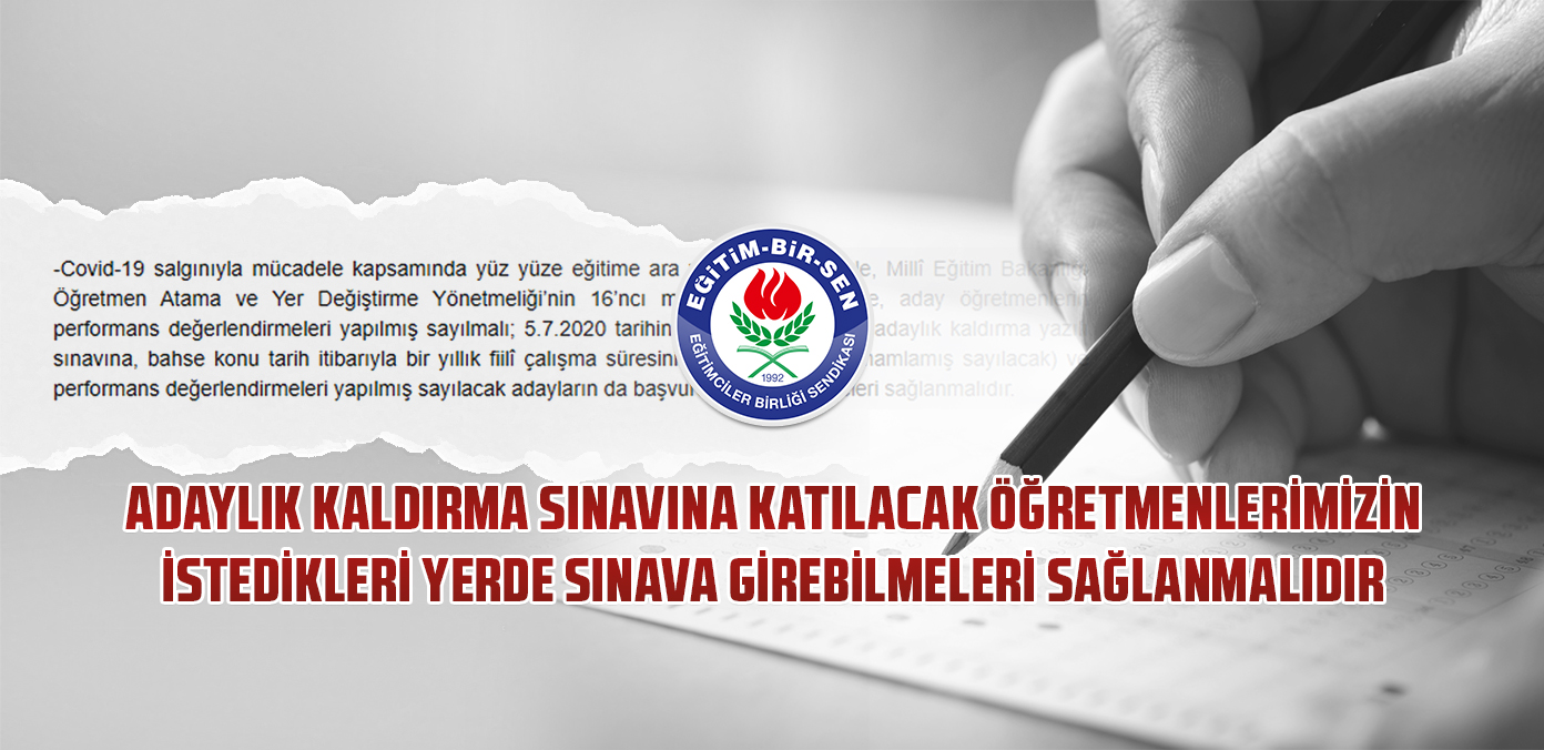Diğer yandan, Bakanlıktan beklentimiz, aday öğretmenlerin görevli oldukları yerler yerine istedikleri veya halen bulundukları yerlerde sınava girebilmelerinin sağlanmasıdır. Salgın sürecinde görev mahalline ulaşımın zorluk ve risk taşıması göz önünde tutularak aday öğretmenlerimizin talep ettikleri yerlerde sınava katılabilmeleri yönünde ivedi bir düzenleme yapılmalıdır.