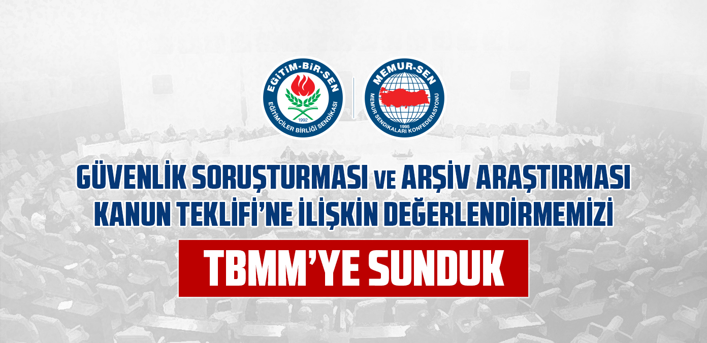 Güvenlik soruşturması ve arşiv araştırmasının yapılmasına ve elde edilecek verilerin kullanılmasına ilişkin temel ilkeler, kimler hakkında yapılacağı, araştırma konusu edilecek bilgi ve belgelerin neler olduğu, bu bilgilerin ne şekilde kullanılacağı, hangi mercilerin soruşturma ve araştırma yapacağı, değerlendirme komisyonu, veri güvenliği ile verilerin saklanma ve silinme süreleri yeniden düzenlendiği teklife ilişkin 15 maddelik öneride bulunan Memur-Sen, kamu personel sistemine yönelik tereddüt oluşturulmamasına vurgu yaptı.