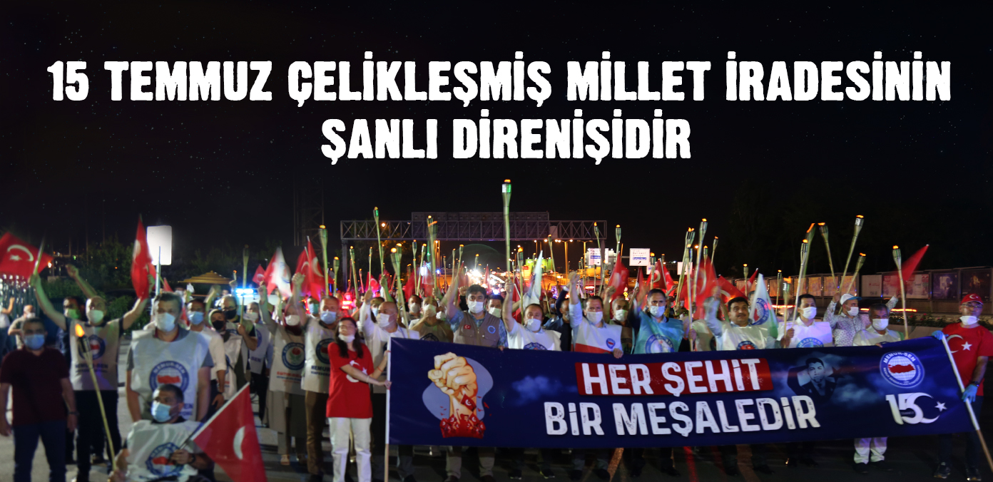 15 Temmuz’un, direnişin ve yeniden şahlanışın adı olduğunu ifade eden Yalçın, “15 Temmuz, şahitler, şehitler, gaziler geçididir. Bir şehadet şöleni, bir diriliş gecesidir! Yeni bir Çanakkale, yeni bir Kûtü’l-Amare direnişidir. Demagojinin güvenli limanına sığınmadan, sözde değil özde, lafla değil kanla yazılmış antiemperyalist bir manifestodur. Diğerkâmlığın zirvesi, kardeşliğin simgesi, adamlığın belgesidir. Şehitlerimiz o gece bize özgür bir gelecek, bağımsız bir vatan hediye ettiler. Daha güçlü, daha özgür, daha büyük bir Türkiye’nin önünü açtılar. Bugün hakkımızı dünyanın neresinde olursa olsun alabiliyorsak, Ayasofya Camii yeniden ibadete açıldıysa, bu şehitlerimizin o gece kanlarıyla meydanları kızıl kana boyaması sayesindedir. O gece gördüğümüz ihaneti de sadakati de asla unutmayacağız ve unutturmayacağız. ‘Soykırımı unutmayın, çünkü unutulan soykırım tekrarlanır’ diyor Aliya. Biliyoruz ki zulmü unutan, aynı zulme bir daha uğrar. Gaflete yatan, ihanete uyanır. İşte bu yüzden dördüncü yılında da ‘Her şehit bir meşale’ diyerek meydanlardayız. O gece meydanlara hangi şuurla çıktıysak, bugün de aynı şuurla buradayız. Bu vatana gözünü dikenlere 15 Temmuz’u hatırlatmak için buradayız. Evet, biz buradayız, vatan savunmasındayız, nöbetteyiz, teyakkuzdayız” şeklinde konuştu.
