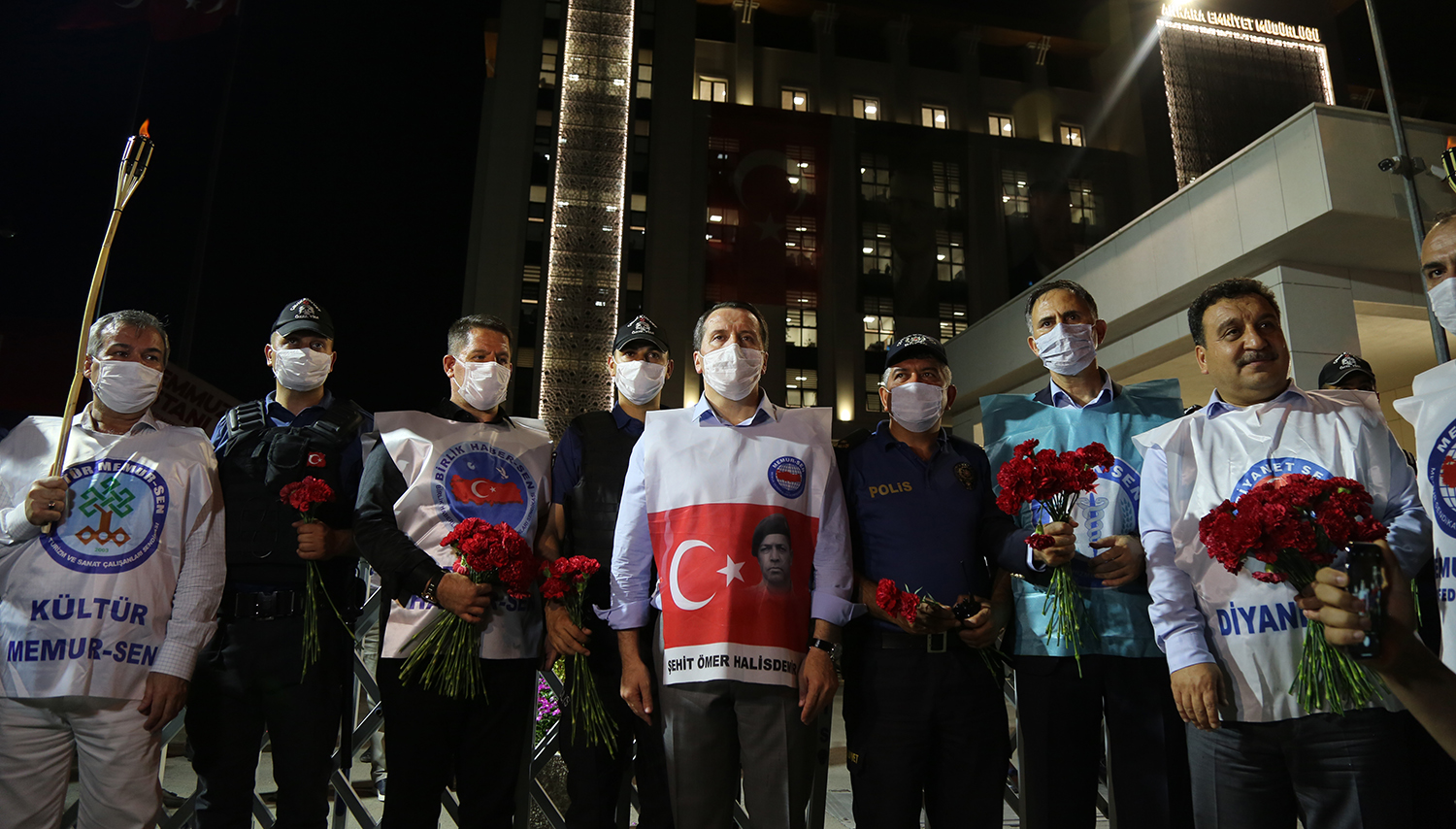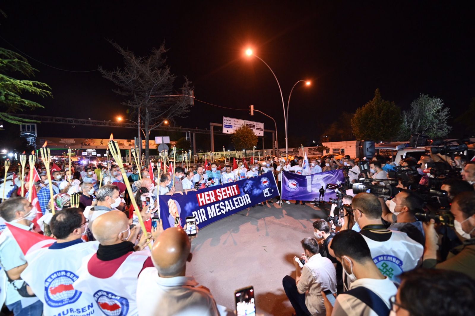 15 Temmuz şanlı direnişinin dördüncü yıl dönümünde, o gece darbecilerin hedefi olan Ankara Emniyet Müdürlüğü’ne yürüdük. Şehitleri temsilen meşalelerin taşındığı yürüyüşün ardından Ankara Emniyeti önünde yaptığımız basın açıklamasıyla darbe girişimini bir kez daha kınadık.