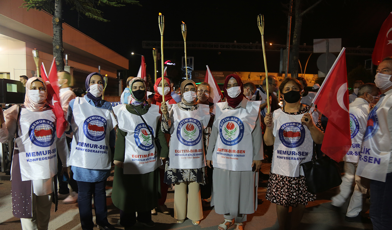 O gece darbe olduğu haberini alır almaz, henüz hiçbir çağrı yapılmadan, ‘Gün bugündür, evde durma günü değildir, millî iradeye sahip çıkmak günüdür, herkes meydana çıksın’ diyerek 1 milyonu aşkın teşkilatlarıyla meydanlara çıktıklarını kaydeden Yalçın, “Kimileri bankamatiğe ve markete koşarken, Memur-Sen meydanlara koşuyordu. Bu bir vatan savunmasıdır dedik ve meydanları doldurduk” ifadelerini kullandı.