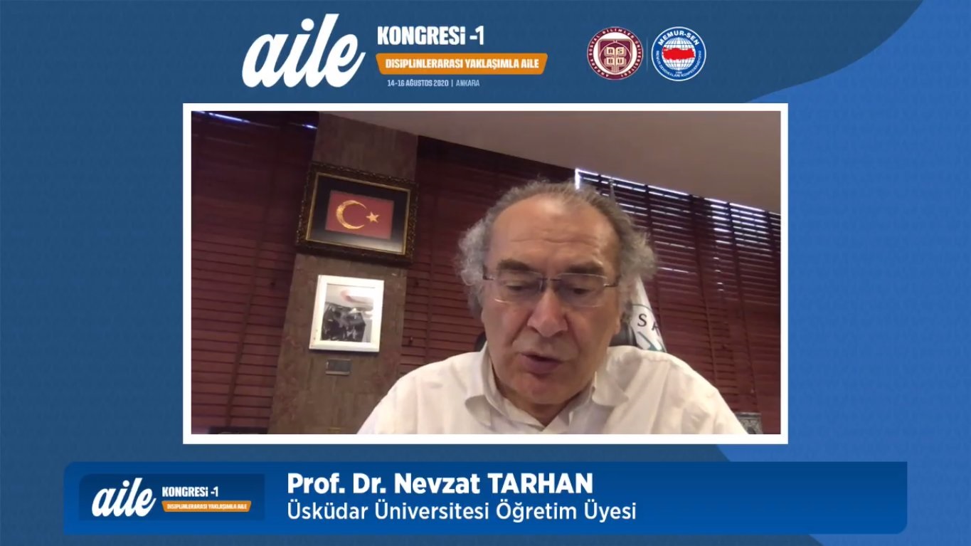 Prof. Dr. Nevzat Tarhan, “Gelenek ve Modernizm Arasında Aile” başlığıyla gerçekleştirdiği sunumda Aile Kongresi’nin organize edilmesinde emeği olanlara teşekkür ederek bu güzel gayretin hayırlı sonuçlar üreteceğine inandığını ifade etti. Tarhan, “Dünyada bu konuda kötüye bir gidiş var ve sosyal bilimciler gelecekte ne tür bir gelişme olacağını kestiremiyor ancak biz küresel tezlerin aksine kendi çözümlemelerimizi sunuyoruz ve bu küresel tezlere bir alternatif üretiyoruz. Bununla da kalmayıp bize has ve özgü, tez, anti tez ve sentez de üretiyoruz” diye konuştu.