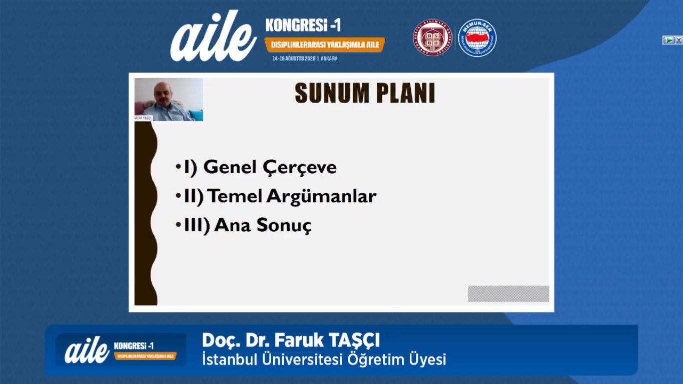 İstanbul Üniversitesi Öğretim üyesi Doç. Dr. Faruk Taşçı, “Sosyal Politikalarda Aile” başlığıyla gerçekleştirdiği sunumda, “Gelenekteki her şeyin olumlanması ayıklanmadan kabullenilmesi gibi bir sorunumuz da var. Aile dediğimiz yapı sadece hak odaklı bir yapı değil hak ve sorumluluk odaklı bir yapıdır. Anne hakkı ve sorumlulukları demezseniz iki sonuç olur. Birisi ailedeki fertler arasında kaçınılmaz bir çatışma olur. Bunun da iki yansıması var birisi şiddet diğeri kuşaklar arası çatışma. İkinci sonuç ise toplumda sorumluluk meselesi sosyalleşmenin baş nedenidir. Sosyalleşme ailede problemli olacağı için bu fertler topluma çıktığında sosyal eksiklik olduğu zaman sorunlar çıkacaktır” değerlendirmesinde bulundu.
