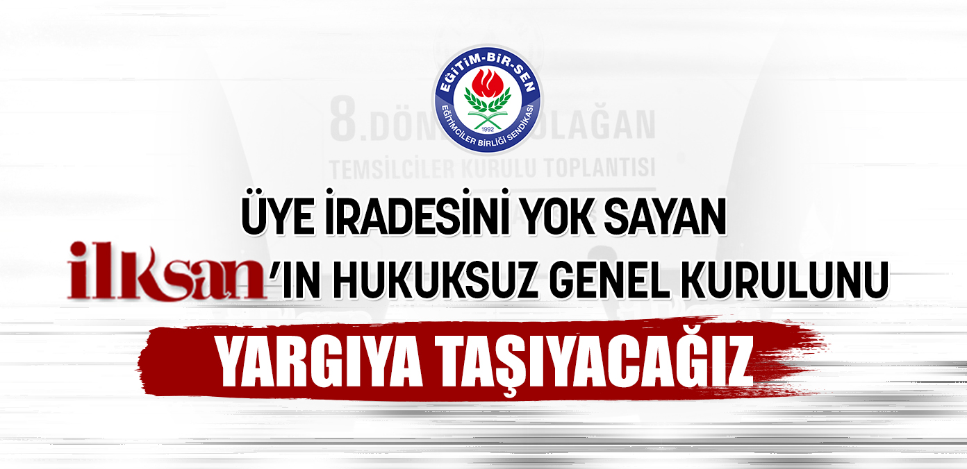 İLKSAN Ana Statüsü’ne 2017 tarihinde eklenen geçici 1. maddede yer alan, “Bu maddenin yürürlüğe girmesinden itibaren, 4 yıl süreyle seçilen mevcut İlçe ve İl Temsilcilerinin görev süreleri 6 yıla çıkarılmış sayılır” hükmünün sendikamızın açtığı dava sonucunda Danıştay’ca iptali neticesinde, 2016 yılında yapılan temsilcilik seçimlerinde seçilen temsilcilerin görev süreleri Haziran 2020 tarihi itibarıyla sona ermiştir. Bu çerçevede, öncelikle İLKSAN ilçe ve il temsilcileri seçimlerinin gerçekleştirilmesinin ardından genel kurulun toplanması gerekirken, İLKSAN, seçim sandığını üyesinin önünden kaçırarak, görev süresi sona eren yetkisiz temsilcilerle hukuksuz ve kanunsuz bir şekilde genel kurul yapmıştır.