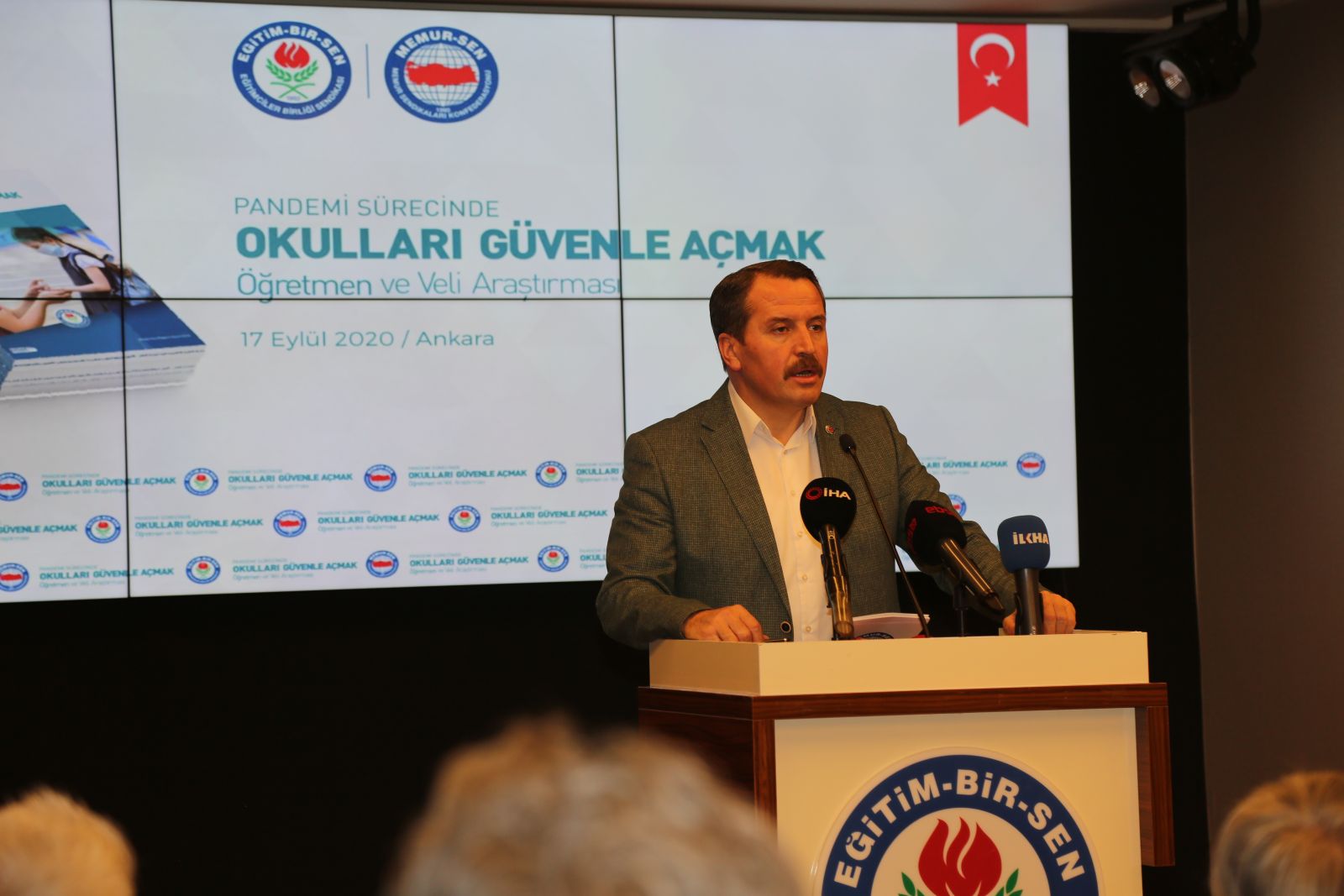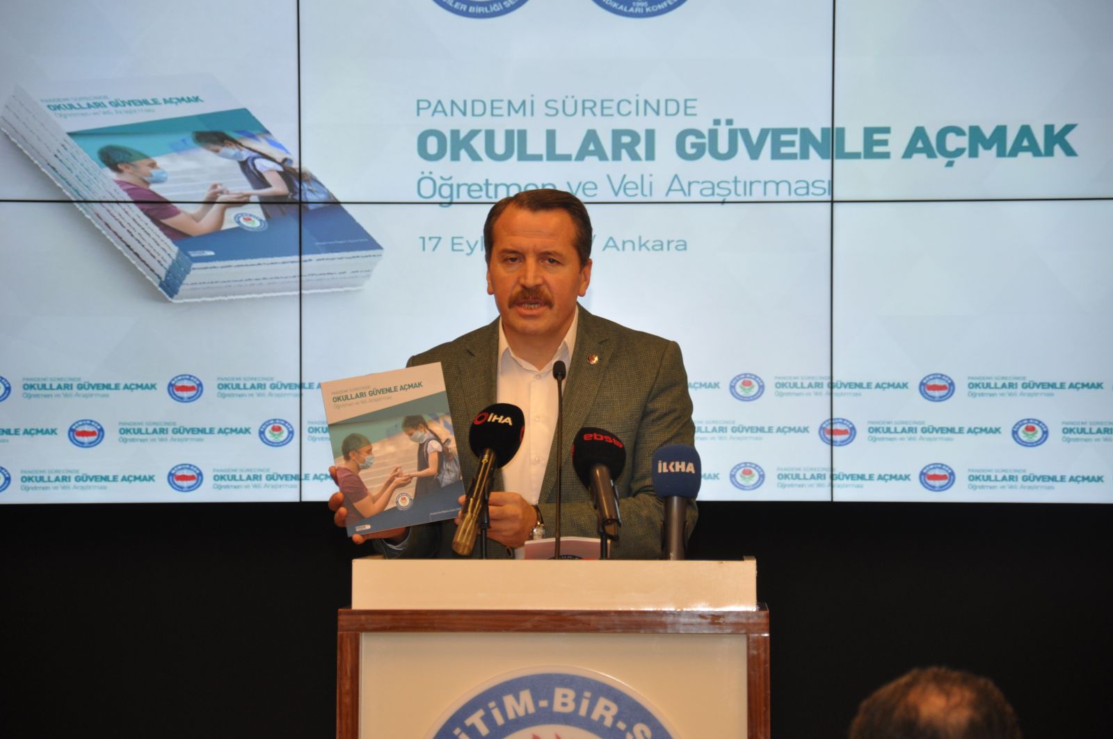 Ali Yalçın, Eğitim-Bir-Sen Stratejik Araştırmalar Merkezi (EBSAM) tarafından hazırlanan“Pandemi Sürecinde Okulları Güvenle Açmak: Öğretmen ve Veli Araştırması” raporunu kamuoyuyla paylaştı. Düzenlenen basın toplantısında konuşan Yalçın, sadece Türkiye’nin değil, bütün dünyanın sıkıntılı ve çetin bir süreçten geçtiğini ifade ederek, şöyle devam etti: “Koronavirüsün (Kovid-19) hızlı bir şeklide yayılarak salgına dönüşmesiyle birlikte neredeyse bütün ülkelerde yüz yüze eğitime ara verilerek okullar kapatılmış, eğitim sürecinin devam edebilmesi, öğrencilerin eğitimden geri kalmaması için online/uzaktan eğitimegeçilmiştir. Birçok ülke gibi Türkiye de mevcut teknolojik imkânlarına, öğretmenlerin teknolojiyi kullanma becerilerine ve öğrencilerin internete erişim düzeyine bağlı olarak uzaktan eğitime başlamıştır. Bu süreçte öğretmenlerin ve öğrencilerin etkileşim hâlinde olmalarına ve birlikte çalışabilmelerine imkân sunan çeşitli e-öğrenme platformları, televizyon programları veya sosyal medya platformları aracılığıyla uzaktan eğitimedevam edilmiştir.”