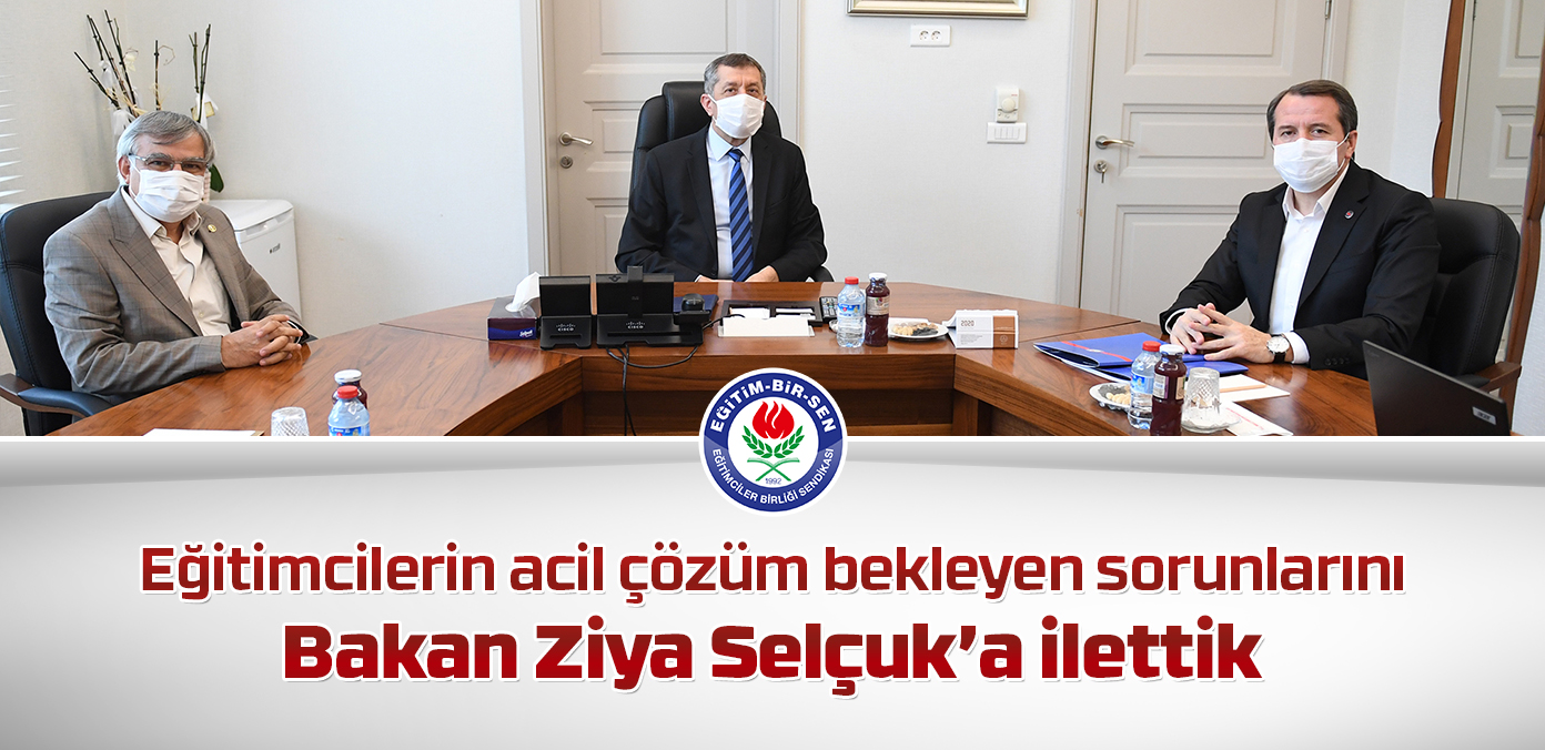 Eğitim-Bir-Sen ve Memur-Sen Genel Başkanı Ali Yalçın, Genel Sekreter Latif Selvi ile birlikte Millî Eğitim Bakanı Ziya Selçuk’u ziyaret ederek, eğitime ve eğitim çalışanlarına ilişkin acilen çözülmesi gereken sorunları görüştü. Eğitime ve eğitim çalışanlarına dair sorunların ele alındığı, çözüm önerilerinin konuşulduğu ziyarette Bakan Ziya Selçuk’a iletilen konu başlıkları şöyle: