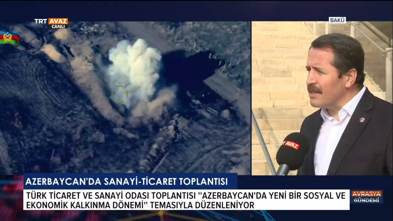 Heyet, Türk Ticaret ve Sanayi Odası’nın (TSO) “Azerbaycan Özel Gündemi” toplantısı için ve Ermenistan’ın Azerbaycan’a saldırılarına, işgal girişimlerine yönelik mücadelesini sürdüren Bakü’ye destek ziyaretinde bulunmak için muhataplarıyla bir araya geldi. Türk TSO toplantısına Azerbaycan, Kazakistan, Kırgızistan, Özbekistan ve Türkiye’den de katılım sağlandı. Türk Konseyi Genel Sekreteri Büyükelçi Baghdad Amreyev’in de hazır bulunduğu toplantıya, Azerbaycan Ekonomi Bakanı Mikail Cabbarov ve Dışişleri Bakan Yardımcısı Ramiz Hasanov da iştirak etti.