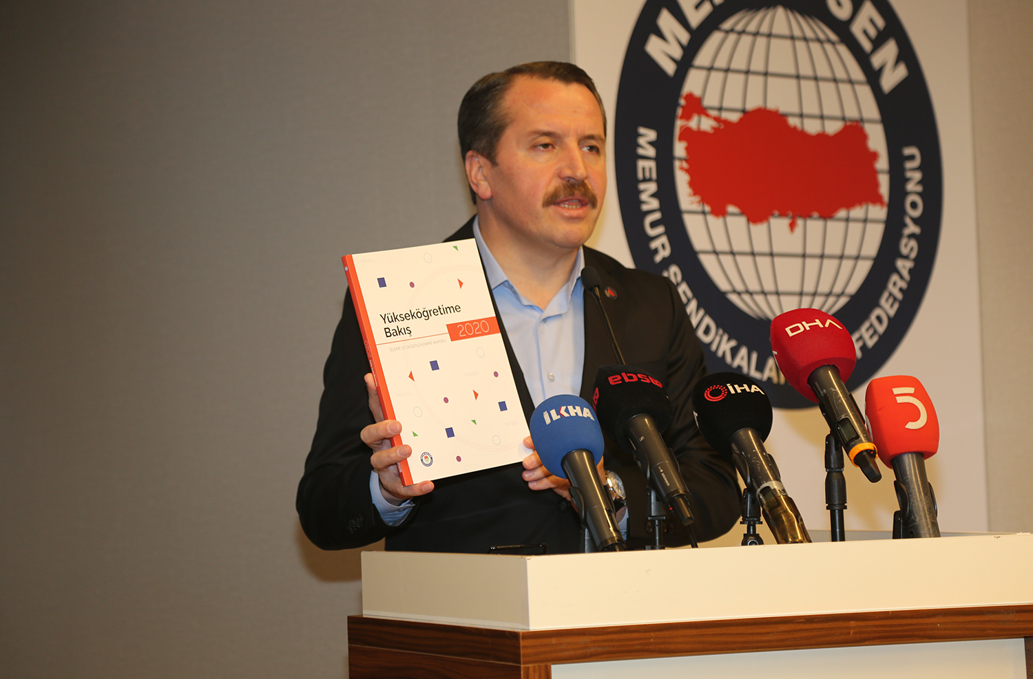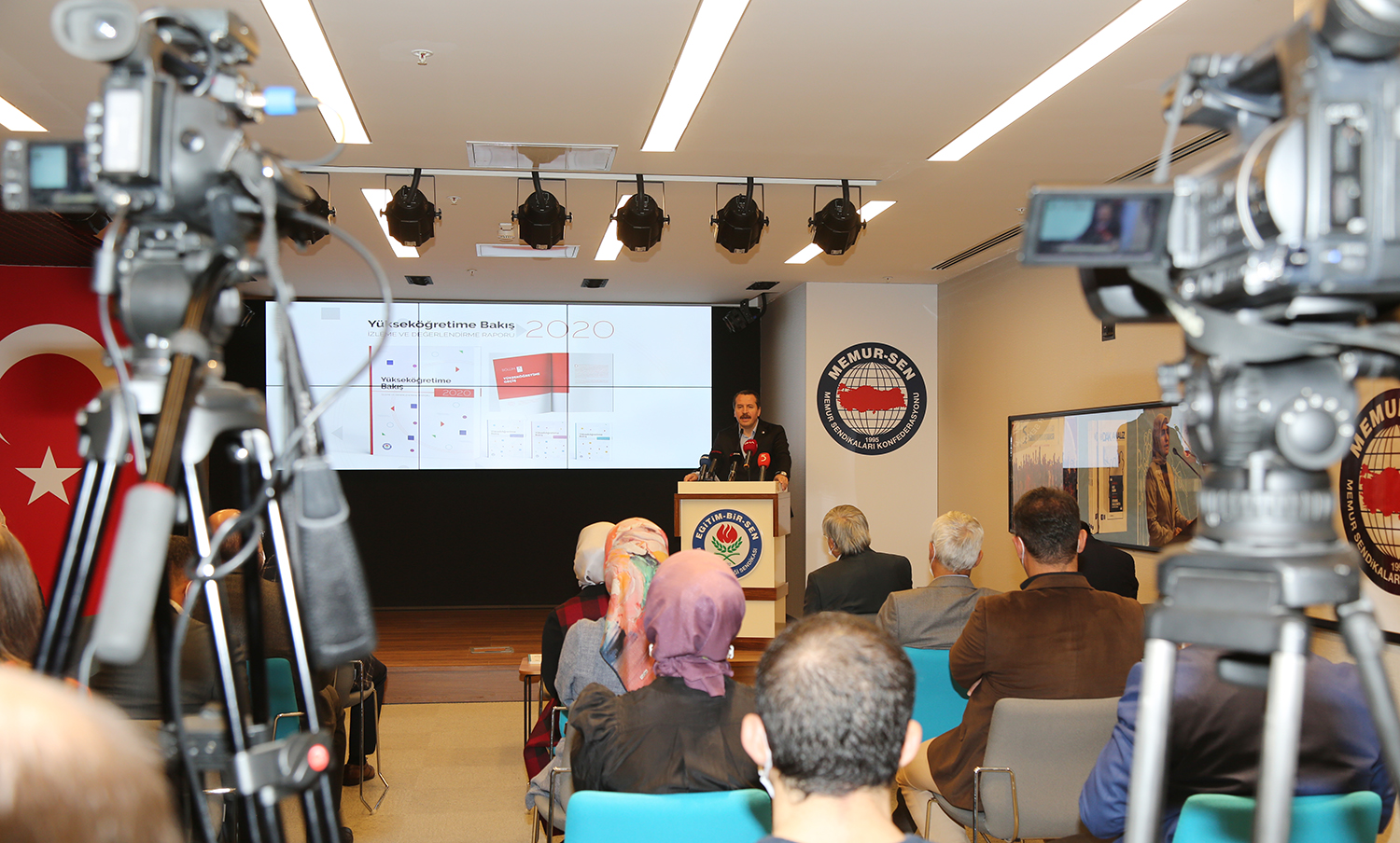 Ali Yalçın, Eğitim-Bir-Sen Stratejik Araştırmalar Merkezi’nin (EBSAM) hazırladığı Yükseköğretime Bakış 2020: İzleme ve Değerlendirme Raporu’nu kamuoyuyla paylaştı. Memur-Sen Genel Merkezi’nde düzenlenen basın toplantısında konuşan Yalçın, eğitim, öğretim ve bilim hizmet kolunun genel yetkili sendikası olarak üyelerinin ekonomik ve sosyal haklarını korumanın yanı sıra, eğitimin her alanına ilişkin odak analizler, araştırmalar, raporlar hazırlayıp projeler yürüttüklerini, veriye dayalı bilimsel bakış açısıyla çalışma hayatının ve eğitim sisteminin temel sorun alanlarını ve çözüm önerilerini ele aldıklarını söyledi.