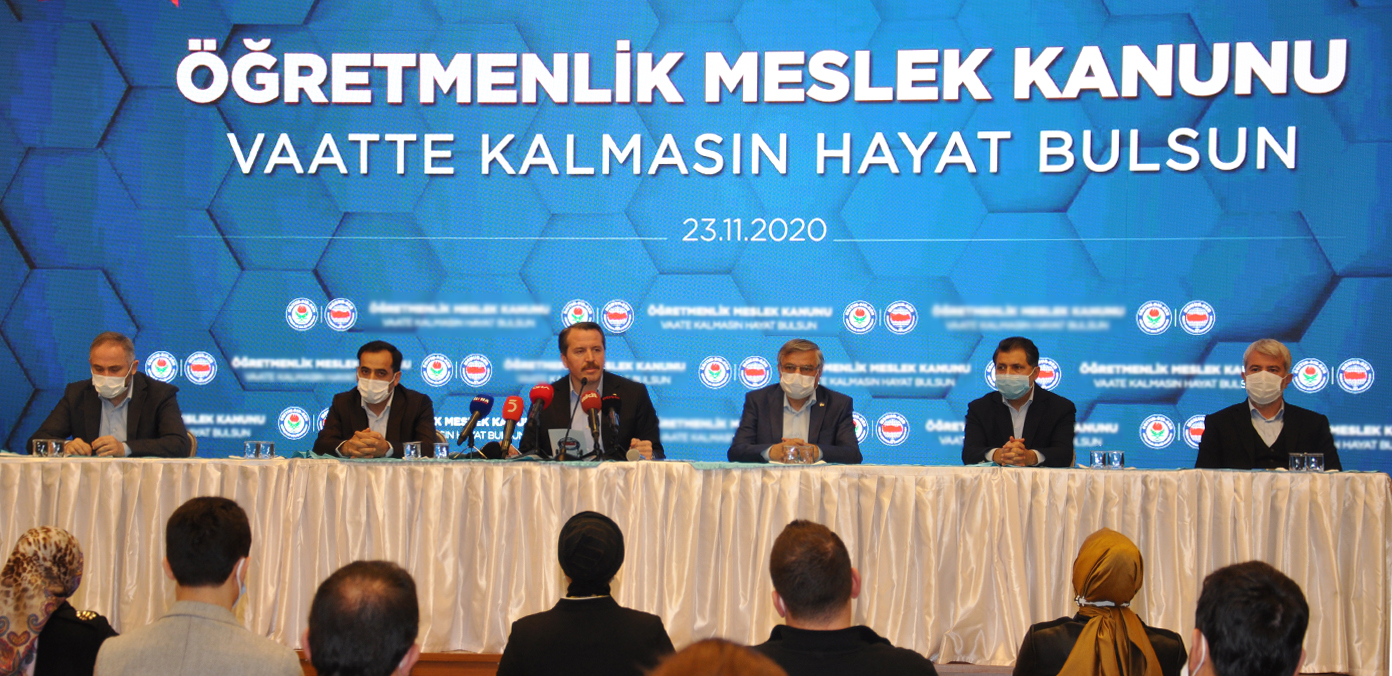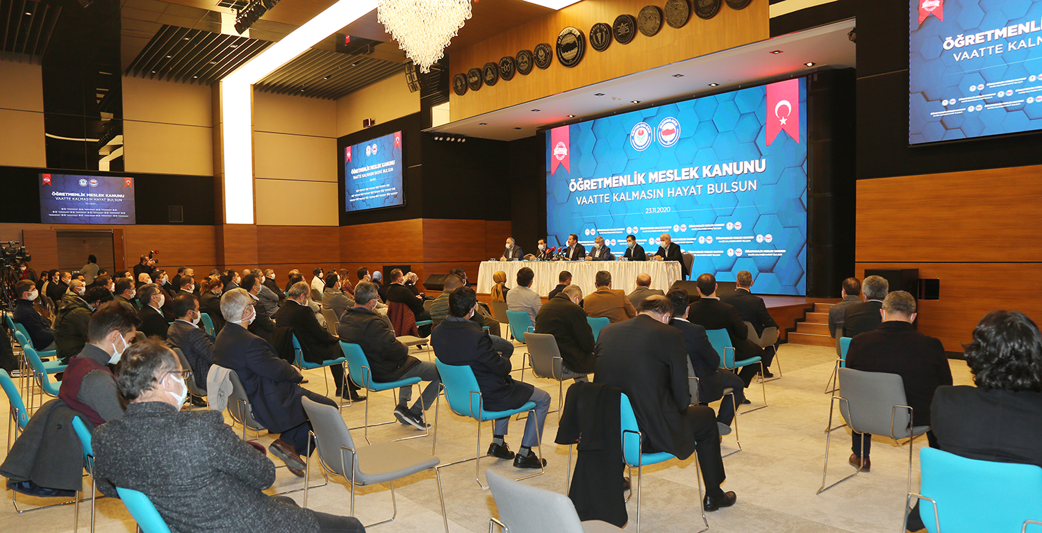 Eğitim-Bir-Sen ve Memur-Sen Genel Başkanı Ali Yalçın, öğretmenliğin, kamu sistemi içerisinde tanımlanmış eğitim-öğretim hizmetleri sınıfından müstakil bir meslek kanununa kavuşturulması konusunun daha fazla ötelenmemesi gerektiğini belirterek, “Mesleğin hak ettiği şekilde tanımlanması, sosyal zeminde öğretmenlerin itibarının, haklarının korunması ve artırılması, yönetmeliklerle, genelgelerle oluşan görev, yetki, ehliyet, liyakat noktasındaki dağınıklığın giderilmesi için meslek kanununun ivedilikle yürürlüğe konulması gerekmektedir” dedi.