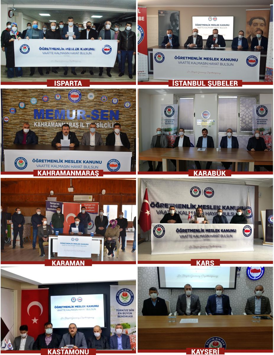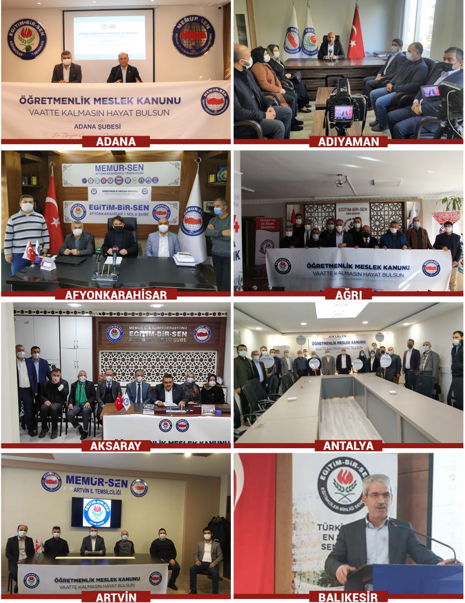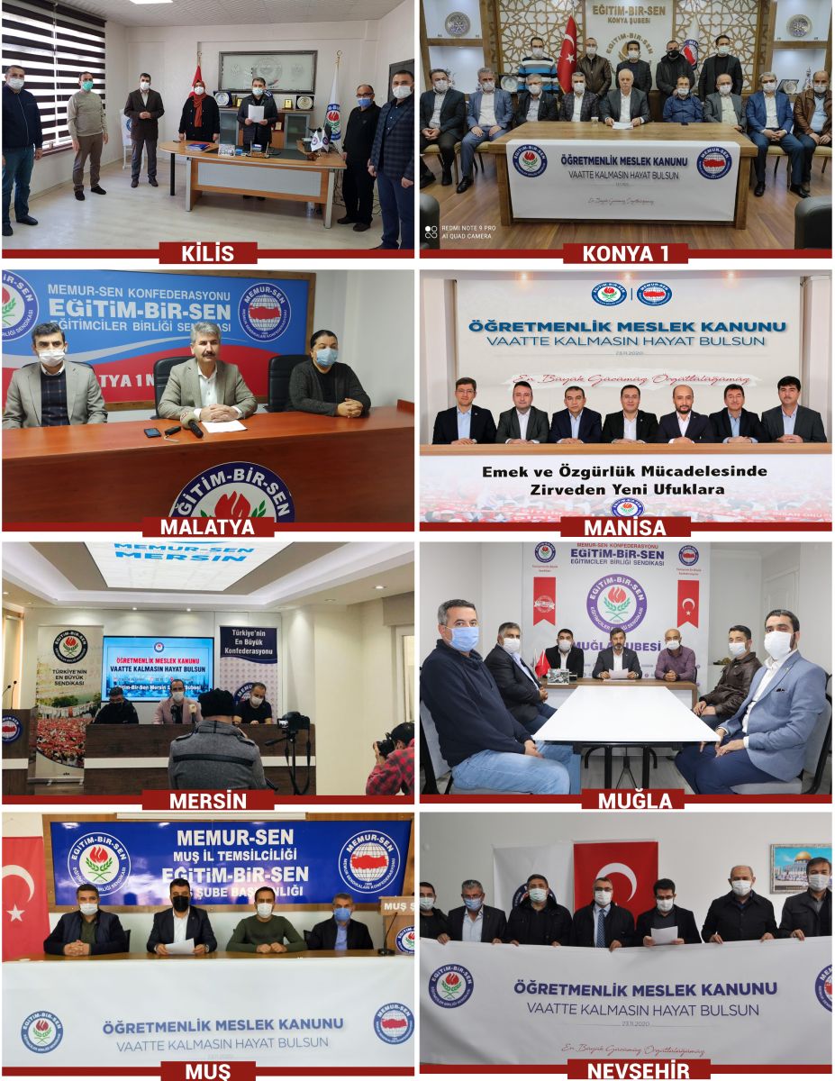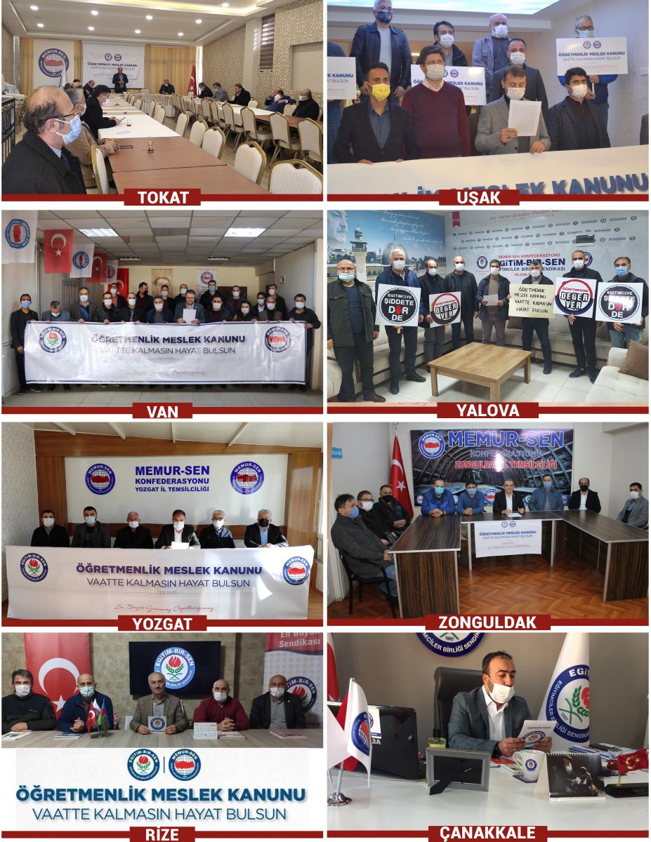 24 Kasım Öğretmenler Günü dolayısıyla eğitim çalışanlarının sorunlarına dikkat çekmek ve öğretmenlerin meslek kanunu talebini dile getirmek amacıyla 81 ilde basın açıklaması yaparak, meslek kanununun ‘öğretmenlerin statüsünü, toplumsal itibarını yükseltebilecek, haklarda kazanç sağlayacak, çalışma şartlarını iyileştirecek, şiddeti de önleyecek’ türden bir içerikle uygulamaya konulması çağrısında bulunduk.