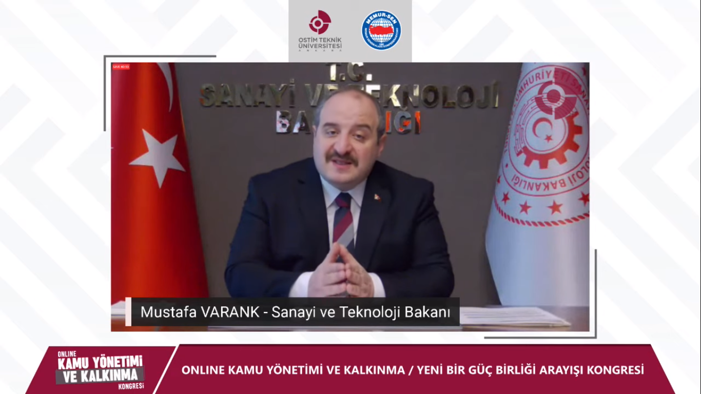 Sanayi ve Teknoloji Bakanı Mustafa Varank, Memur-Sen ve OSTİM Teknik Üniversitesi’nin giriştiği bu vizyoner adımın yeni perspektifler kazandıracağına yürekten inandığını ifade ederek, “Türkiye’nin topyekûn kalkınmasında kamu özel sektör ve akademinin birlikte hareket etmesi çok önemli bir rol oynuyor. Bu nedenle kongrenin sonuçlarını dikkatli bir şekilde inceleyeceğiz” diye konuştu.