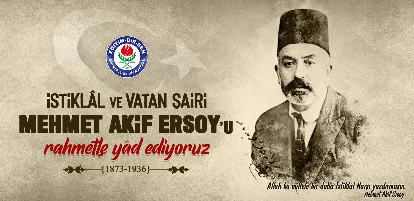 Eğitim-Bir-Sen olarak, millî kimliğimize, ümmet bilincine büyük katkıları olmuş Millî Şairimiz Mehmet Akif Ersoy’u, sadece anmakla yetinmeyecek, onu anlamaya ve anlatmaya devam edecek; Asım’ın Nesli’ne layık gençler yetiştirmek için var gücümüzle çalışacağız.