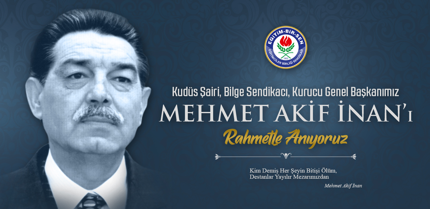 “Bitirip şu kuru kara ekmeği/Göç etsem diyorum yar ellerine” mısralarıyla aidiyetini ve vuslat arzusunu dile getiren Bilge Sendikacı, Kudüs Şairi, kurucu genel başkanımız olmasının ötesinde köklü bir hareketin lideri olarak hiç unutmayacağımız, unutturmayacağımız, hep hayırla yâd edeceğimiz Mehmet Akif İnan’a bir kez daha Allah’tan rahmet diliyoruz.