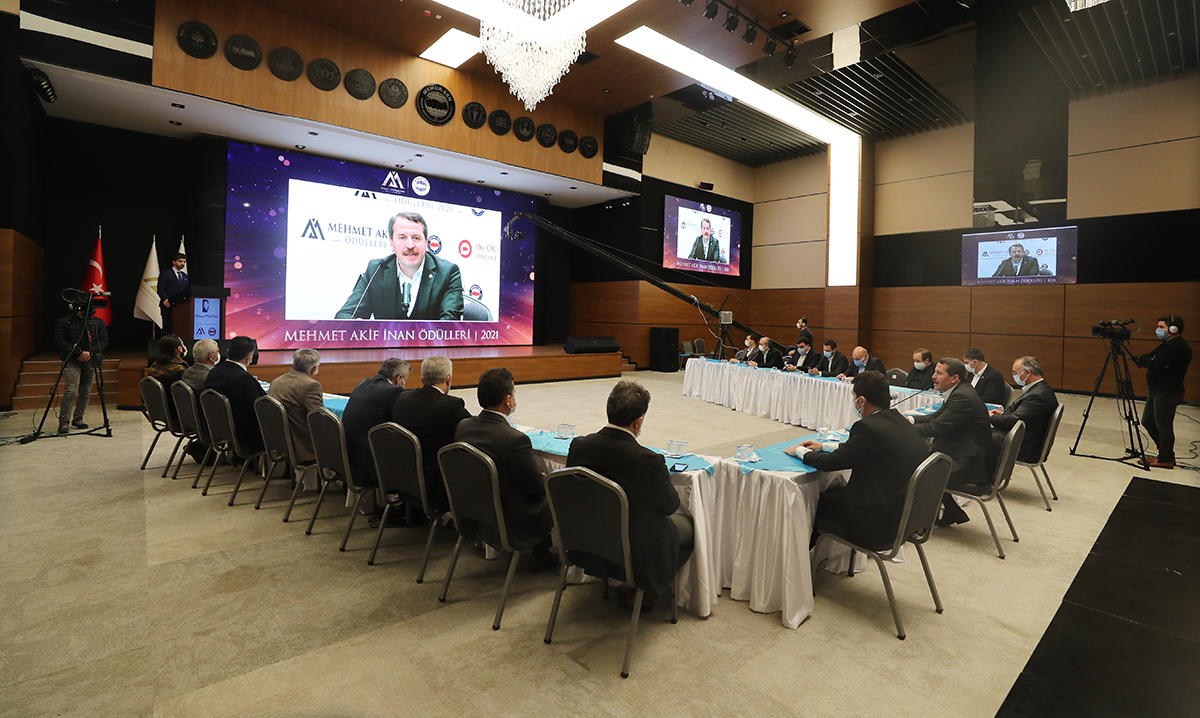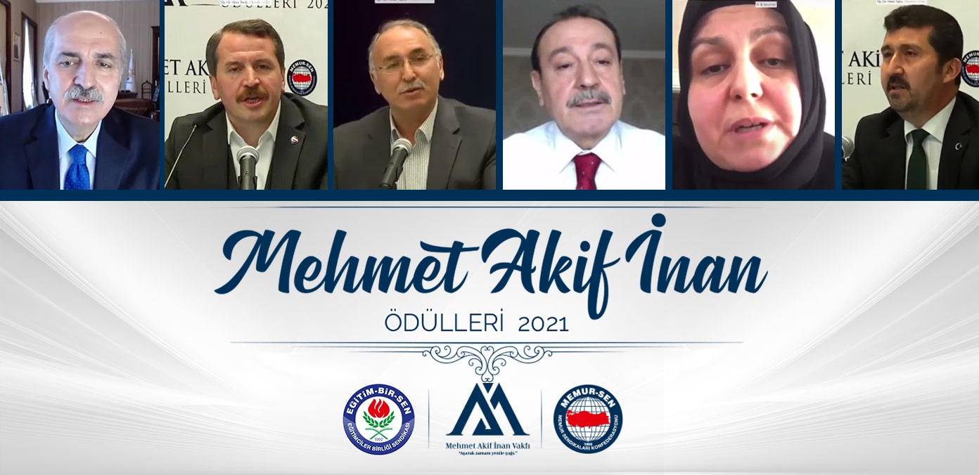 Mehmet Akif İnan Vakfı tarafından ikincisi organize edilen Mehmet Akif İnan Ödülleri programı video konferans yöntemiyle yapıldı. Memur-Sen Genel Merkezi’nde gerçekleştirilen programa, Eğitim-Bir-Sen ve Memur-Sen Genel Başkanı Ali Yalçın, Memur-Sen Yönetim Kurulu, Memur-Sen’e bağlı sendikaların genel başkanları, Mehmet Akif İnan Vakfı Başkanı Ahmet Özer, Mehmet Akif İnan’ın kızı Banu İnan ve kardeşi Dr. Ahmet İnan, ASBÜ Rektörü ve Akif İnan Ödülleri Jüri Başkanı Prof. Dr. Musa Kazım Arıcan, AK Parti Genel Başkan Vekili Prof. Dr. Numan Kurtulmuş katıldı. Program, Kur’an-ı Kerim tilavetiyle başladı ve ardından Mehmet Akif İnan için hazırlanan belgesel gösterildi. Gösterimin ardından protokol konuşmalarına geçildi.