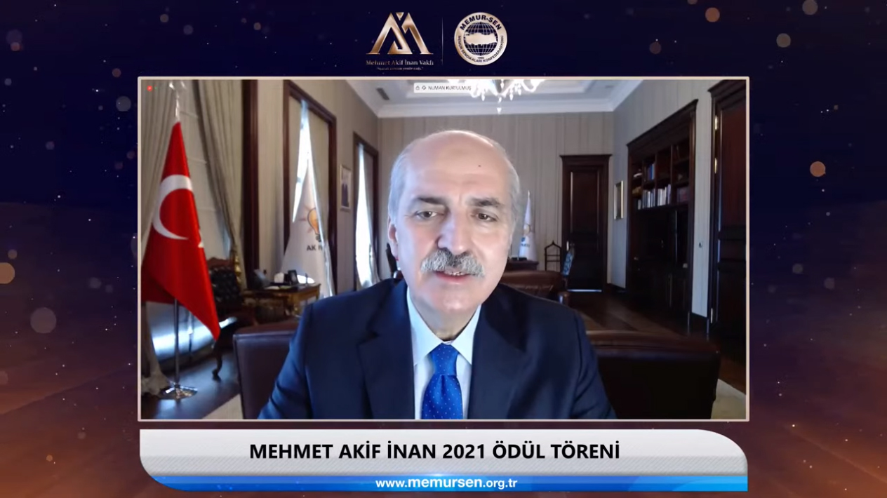 AK Parti Genel Başkan Vekili Prof. Dr. Numan Kurtulmuş, vefatının 21. yıl dönümünde Akif İnan’ı hayırla yâd ederek, ödüllerin, onun temsil ettiği idealler ve fikirlerin yaşatılması adına önemli olduğunu söyledi. İnan’ın kurucusu olduğu Memur-Sen’in de bugün onun hatırasını yaşattığını ifade eden Kurtulmuş, “Memur-Sen’in geldiği nokta bakımından önemli bir aşamadayız. Ben de Memur-Sen’in kuruluş aşamalarını, sonrasındaki zorlukları yakinen bilen birisiyim. Maddi imkânın, desteğin olmadığı bir ortamda Akif inan ve arkadaşları o zorluklar içerisinde yola çıktılar. Ama en büyük sermayeleri dava şuuruna sahip olmaları ve ihlas sahibi olmalarıydı. Bugün Memur-Sen’in Türkiye’deki en güçlü memur sendikası olması, bu ihlasın bir ürünüdür. Memur-Sen artık uluslararası arenada da ismi duyulan ve sözü edilen bir emek örgütüdür. Bunda da Mehmet Akif İnan ve arkadaşlarının dava şuurunun ve ihlasının etkisi büyüktür. Mehmet Akif İnan ve arkadaşlarına bu vesile ile bir kez daha rahmet diliyorum” dedi.