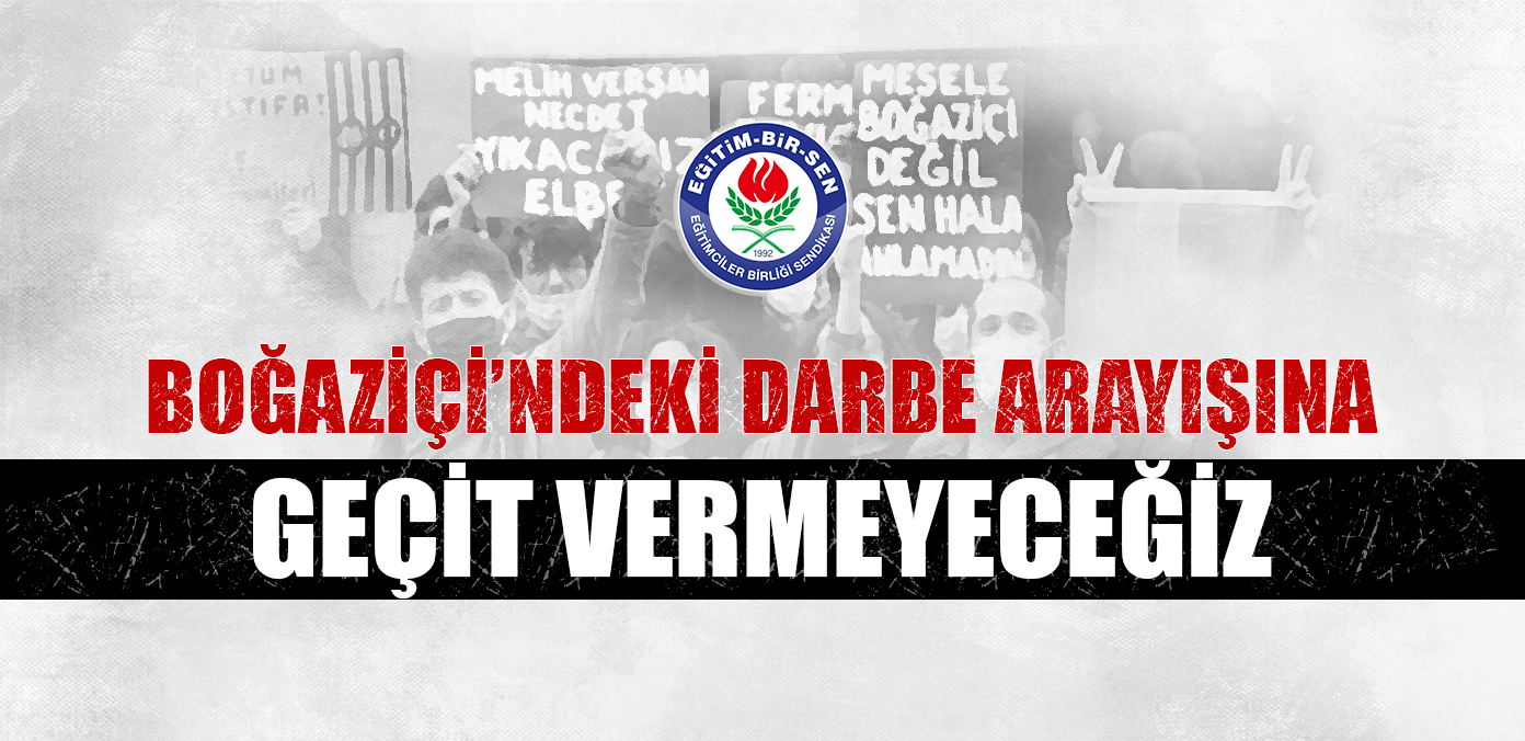 Eğitim-Bir-Sen olarak, yasakların ve sınırlamaların kalkması, özgürlük alanlarının genişlemesi için mücadele ederken; görüntüsü yerli, zihniyeti yabancı, istiklal mücadelesinin manasını bilmediği için istikbali müstemleke temsilciliği olarak hayal eden, kaosla beslenen bu zihniyetin milletimizin iradesine ket vurmasına, devletin bağımsızlığına karşı, 28 Şubat’ta, 17/25 Aralık’ta, 15 Temmuz’da olduğu gibi, aynı kararlılıkla duracağız.