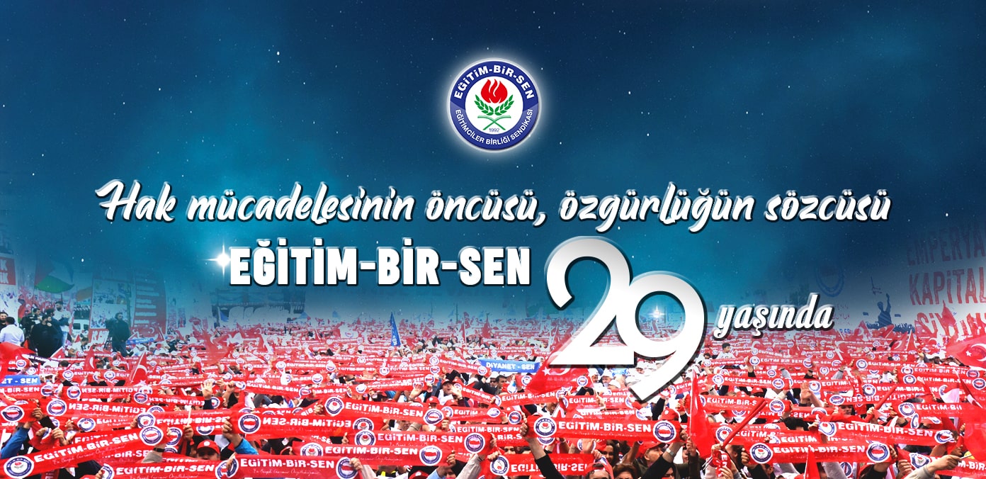 Eğitim-Bir-Sen olarak, kazanımlarla dolu hak, emek ve özgürlük mücadelemizde 29. yılımıza girdik. Fikirden aksiyona, birlikten sendikaya, birlerden yüz binlere, etkiden genel yetkiye, toplu görüşmeden toplu sözleşmeye, genel yetkiden zirveye, yerelden evrensele, zirveden yeni ufuklara, yeni ufuklardan yeni umutlara sürdürdüğümüz tarihimizde sendikacılıkta yeni bir çığır açtık, sendikacılığa yeni bir soluk getirdik.