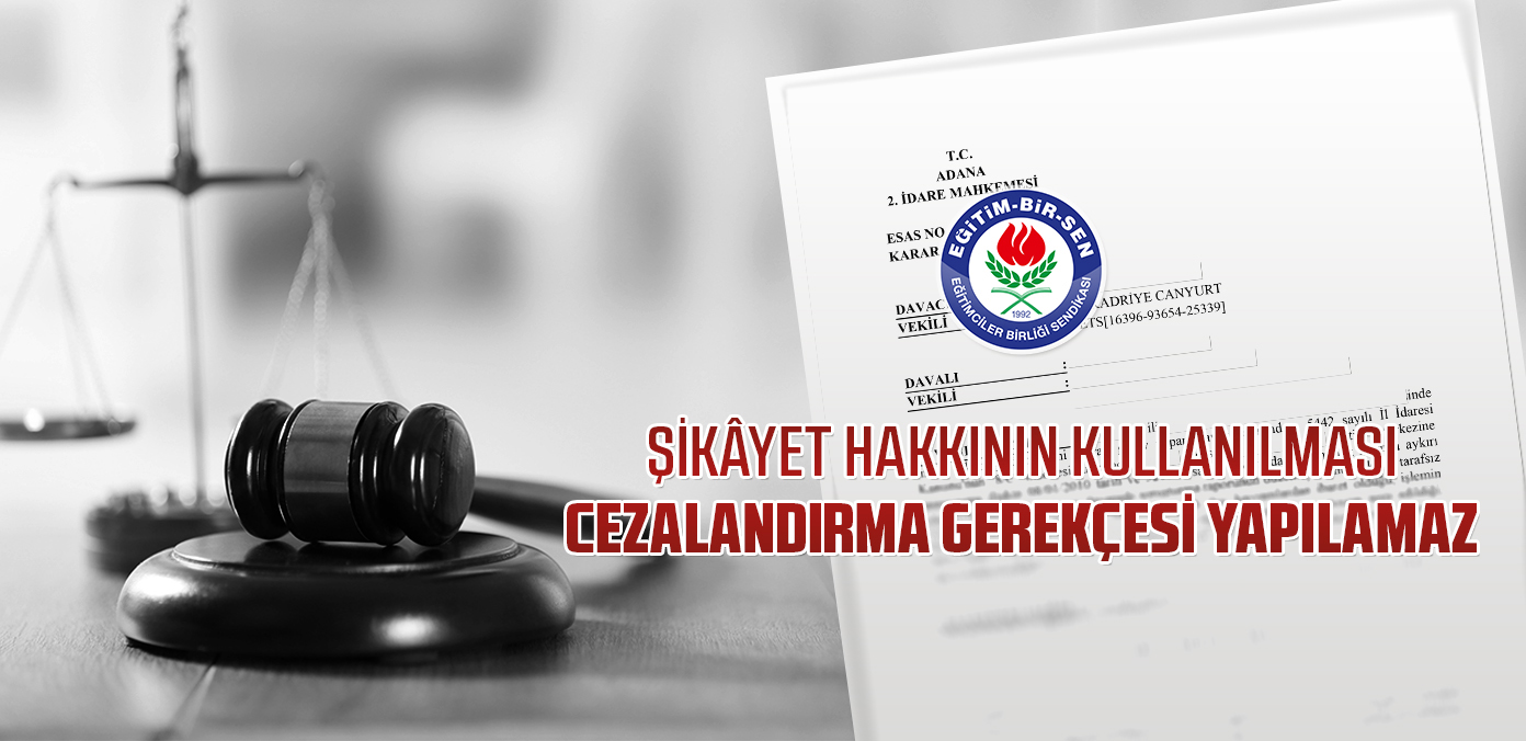 Eğitim-Bir-Sen olarak, şikâyet ettiği kişi hakkında takipsizlik kararı verildiği gerekçesiyle hakkında başlatılan soruşturma neticesinde görev yeri değiştirilen üyemiz adına açtığımız davada, mahkeme, şikâyet hakkının vatandaşlık görevi ve yasal bir hak olduğu vurgusu yaparak, yasal şikâyet hakkını kullanan üyenin salt BIMER şikâyetine dayalı olarak atanmasını hukuka aykırı buldu.