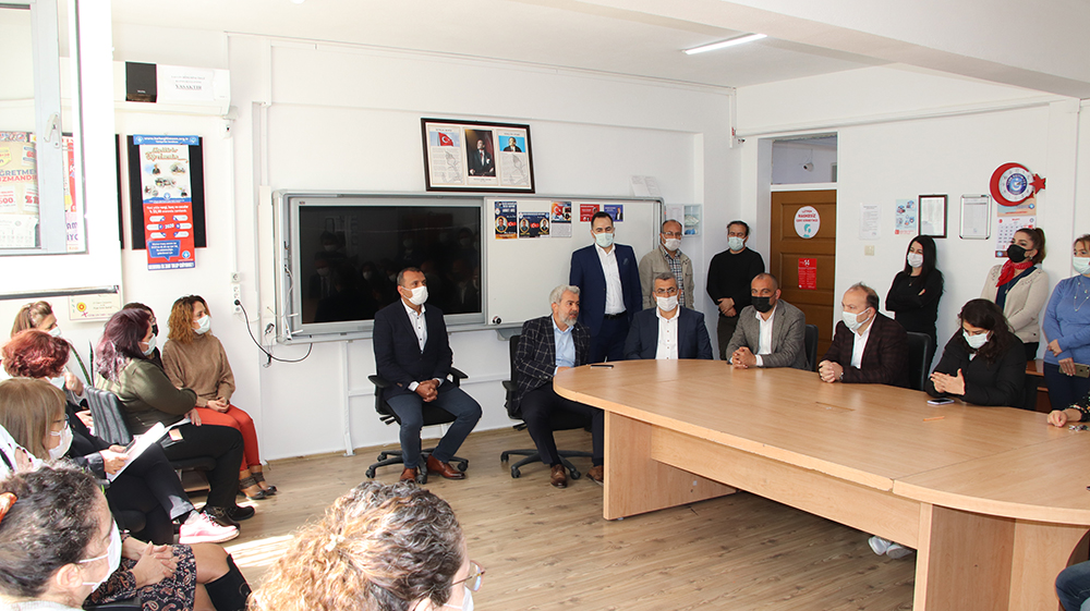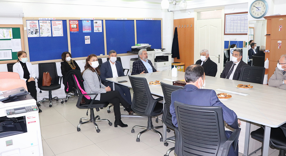 Atilla Olçum, İzmir 1 No’lu Şube Başkanı Ali Kaya ve Yönetim Kurulu üyeleriyle birlikte, İl Millî Eğitim Müdürü Ömer Yahşi’yi ziyaret ederek, salgın sürecinde eğitim ve eğitim çalışanlarının gündemine ilişkin istişarelerde bulundu. Olçum, ayrıca okul ziyaretlerinde de bulunarak eğitim çalışanlarıyla görüştü.