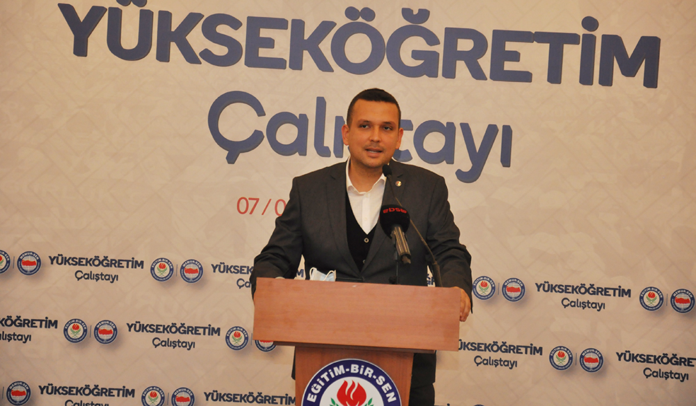 Eğitim-Bir-Sen Üniversite Şube yöneticilerinin katılımıyla düzenlenen Yükseköğretim Çalıştayı’nın açılışında konuşan Ali Yalçın, eğitimde, çalışma hayatında ve sendikal alanda birçok sorun yaşandığını, salgın sürecinde bunlara yenilerinin eklendiğini belirterek, “Engeller aşılmak, sıkıntılar giderilmek, sorunlar çözülmek içindir. Bu da ancak örgütlenmekle, mücadele vermekle mümkündür. Çabalarımız bazen hemen netice vermeyebilir, alın terimiz, mücadelemiz hemen kazanıma dönüşmeyebilir ama her çözüm, elde edilen her kazanım bir mücadelenin sonucudur” şeklinde konuştu.