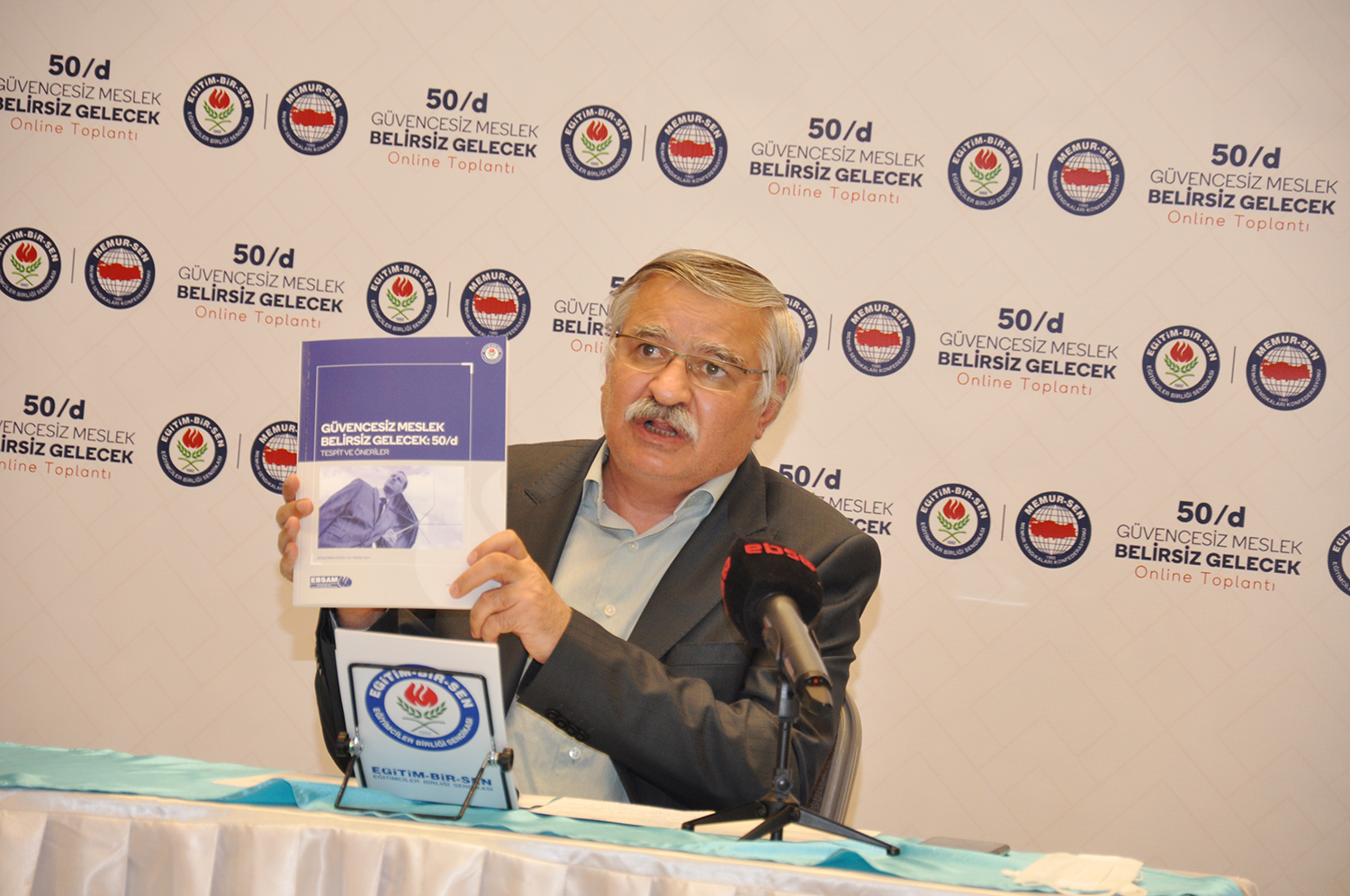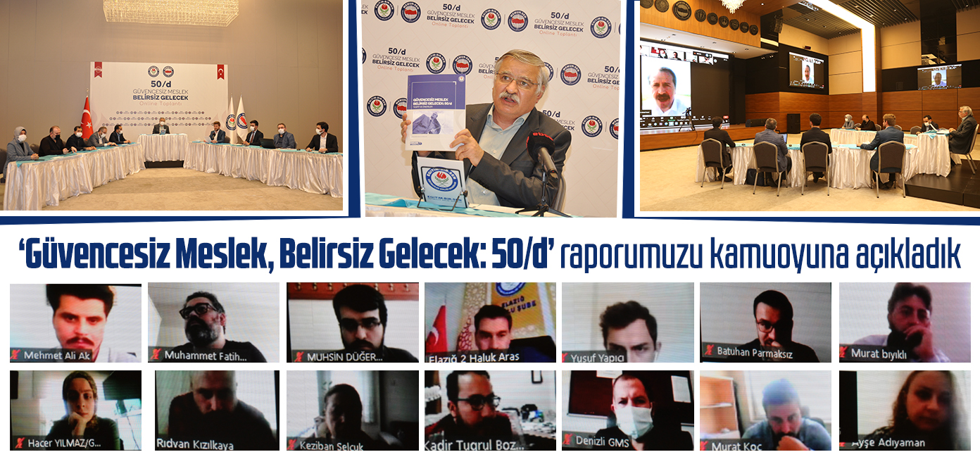 Eğitim-Bir-Sen’in Genç Memur-Sen ve Genç Akademisyenler Birliği’nin katkılarıyla hazırladığı “Güvencesiz Meslek, Belirsiz Gelecek: 50/d, Tespit ve Öneriler’ başlıklı raporun detaylarını açıklayan Latif Selvi, “Araştırma görevlilerinin ilk atamalarının 50/d kadrolarına yapılması, hem iş güvencesinden yoksun bir çalışma ilişkisi kurulmasına neden olmakta hem de 50/d maddesinin amaç ve işlevine ters düşmektedir. İş güvencesinden yoksun 50/d kadrosunun neden olduğu belirsiz geleceği ortadan kaldıracak ve geleceğin bilim insanlarının yetiştirilmesi adına tahsis edilen araştırma görevliliği kadrosunun öngörülebilir bir gelecek sunmasını sağlayacak bir kadro sisteminin tesisi bilimsel gelişim açısında önem arz etmektedir” dedi.