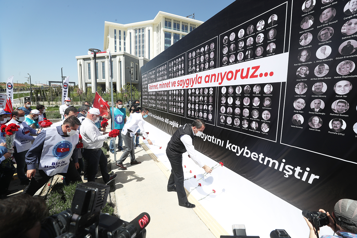 Salgın sürecinde yaşamını yitiren 415 sağlık emekçisine şükranlarını sunduklarını ve Yüce Allah'tan rahmet dilediklerini ifade eden Yalçın, dünyada 7 binden fazla sağlık çalışanının hayatını kaybetmesi nedeniyle bu yılın "Uluslararası Sağlık Çalışanları Yılı" ilan edildiğini anımsattı. Türkiye'de sağlık çalışanlarının çözüm bekleyen sorunlarının olduğunu vurgulayan Yalçın, şu talepleri sıraladı: "Döner sermaye sağlık emekçilerinin canını yakmasın gönlünü alsın ve cebini rahatlatsın. Ek ödemeleri, dönmeyen bütçeden değil, merkezi bütçeden karşılansın. Sağlığımıza güvence sağlayanların, iş güvencesinin olmadığı gerçeğiyle karşı karşıyayız. Türkiye'de hala sözleşmeli sağlık emekçisi yanlışı var. Bütün kamuda olduğu gibi sağlıkta da sözleşmelilik bitmeli. Sağlık alanında personel eksikliği giderilmeli, iş yükü hafifletilmeli. Sağlığımızı koruyanların, akıl, beden ve ruh sağlığına yönelik saldırıları hep birlikte engellemeli, sağlıkta şiddete son demeliyiz."